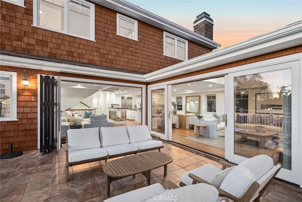 Echoing the timeless Cape Cod character that defines Balboa Peninsula Point, this custom-built family residence blends classic architectural detailing with expansive, thoughtfully designed living spaces. Situated on a prominent 3,375 square foot sunny corner lot and offering nearly 4,000 square feet of interior living, the home delivers a rare combination of scale, warmth, and coastal sophistication. Rich custom millwork and finely crafted built-ins—speak to the home’s bespoke quality and enduring design. Multiple open-concept living and entertaining areas create a natural flow for both everyday living and large gatherings, while the oversized, professional grade island kitchen—complemented by a separate butler’s pantry—serves as the heart of the home. Walls of glass extend the living spaces onto a spacious terrace, creating a natural indoor-outdoor connection ideal for entertaining, sunset dining, and relaxed gatherings after a day at the beach. A split-level configuration provides both privacy and versatility, perfectly suited for multi-generational living or accommodating visiting family and friends. The residence features five bedrooms plus a dedicated office and five-and-a-half baths, offering comfort and flexibility without compromising style. With water views from the terrace and primary suite, two-car parking in addition to a covered carport, and close proximity to both the bay and the ocean—as well as the iconic Wedge—this home captures the essence of the Peninsula Point lifestyle: timeless, welcoming, and designed for coastal living at its finest.