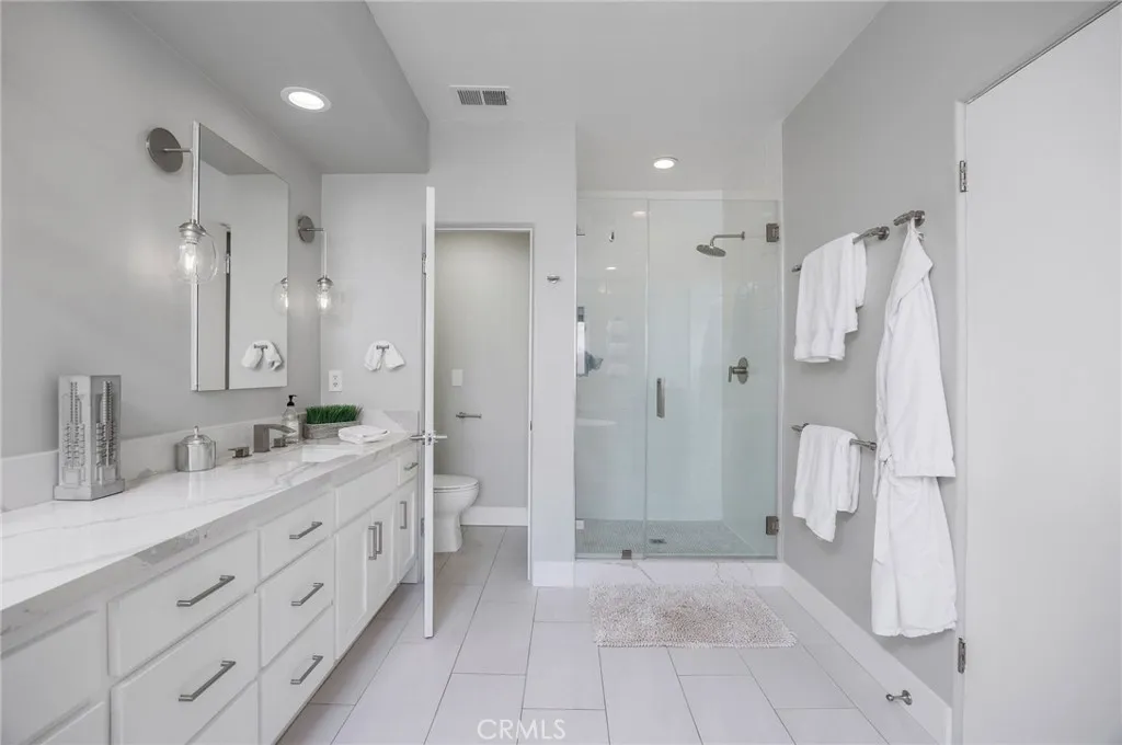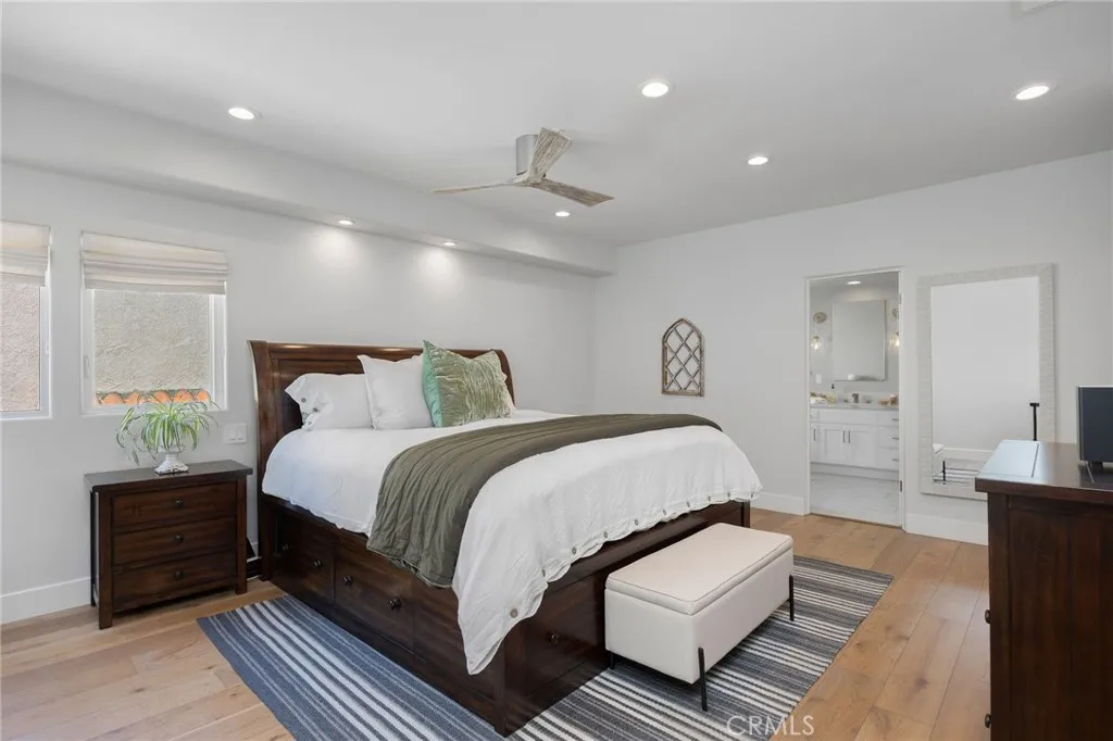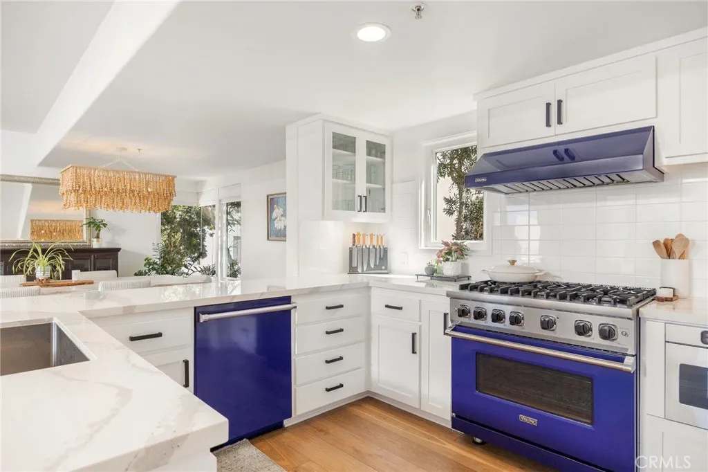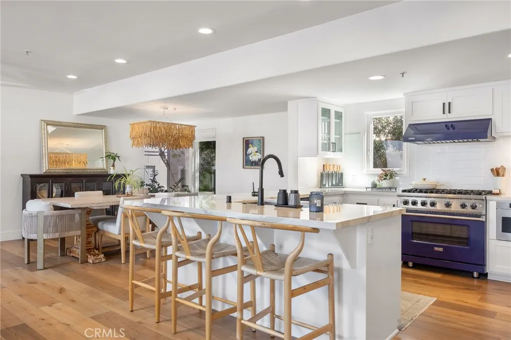 Turnkey coastal townhouse living in a prime Hermosa Beach location - just up from the sand and one block to the Greenbelt. This 3-bedroom, 2.5-bath home offers 2,075 square feet with an open great-room layout, ocean views, and meaningful capital improvements already completed, including a new roof, new deck, hardwood floors, new gas fireplace, fresh paint throughout, and all systems thoughtfully updated. The top level is bright and open, with living, dining, and kitchen spaces that flow naturally through to the outdoor space. Dual sliding doors open to a spacious full property width terrace - ideal for morning coffee, working-from-home afternoons, or hosting friends for sunset evenings with a glass of wine. The kitchen features Cambria quartz countertops and striking cobalt blue Viking appliances, including a 6-burner range, all positioned to stay connected to the main living area and host all the parties. Downstairs, the primary suite opens to a private patio and includes a walk-in closet and a well appointed spa-like bath with dual vanities, soaking tub, and walk-in shower. Two additional bedrooms and a sleek updated bathroom complete the level. Parking and storage set this property apart. In addition to the two-car garage with storage closets, there is an attached and secured carport - great for a golf cart, e-bikes and beach gear. The driveway comfortably fits two additional cars due to the oversized lot, offering parking for up to five vehicles—an uncommon advantage this close to the beach. Located near Pier Avenue, the Strand, and neighborhood cafés and restaurants, this home offers the convenience and lifestyle that define the best of Hermosa Beach living.