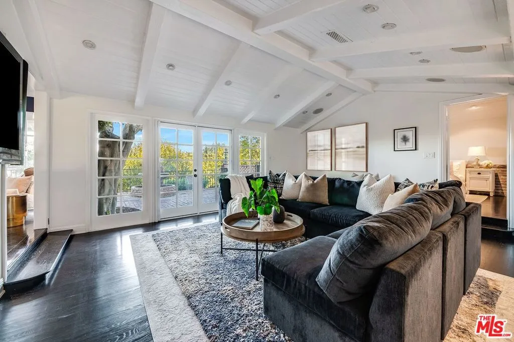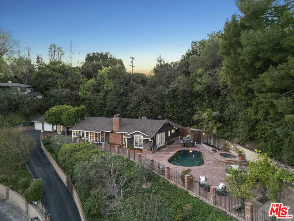 Behind gates on a quiet cul-de-sac, this refined East Coast inspired ranch commands sweeping mountain, valley, and city-light views from an exceptionally private 24,000-square-foot elevated lot. Set above the street and surrounded by beautiful greenery, the residence delivers a rare opportunity for expansive single-level living in the heart of prestigious Longridge Estates. The thoughtfully designed three-bedroom, three-bath 2500 square foot home balances timeless character with modern comfort. Rich wood floors, vaulted and beamed ceilings, and gracious proportions create a sense of classic charm throughout, while large windows, skylights and French doors draw in sunlight and frame the ever-changing views. The primary suite is a true retreat; private, serene, and beautifully appointed. French doors open to the grounds, while the spa-like bath offers a luxurious escape with heated floors, dual stone vanities, Waterworks fixtures, a deep soaking tub, and a steam shower designed for relaxation at the highest level. Additional bedrooms with floor to ceiling windows, one with en-suite bath and walk in closet, offering comfort and privacy for guests or family. Living and entertaining spaces flow effortlessly, from the elegant living room with fireplace to the oversized family room that opens to a view terrace. The massive chef's kitchen anchors the home with custom cabinetry, granite surfaces, a substantial eat-in center island, wine bar, and professional-grade appliances equally suited for everyday living or hosting on a grand scale. Outdoors, the property transforms into a private resort, featuring a sparkling pool and spa, outdoor fireplace, outdoor kitchen, pergola-covered dining patio, and outdoor shower, all positioned to take full advantage of the breathtaking vistas. A three-car garage and expansive motor court complete this exceptional offering. A rare, move-in-ready property combining privacy, views, classic elegance, and effortless single-level living in the best location Studio City has to offer.