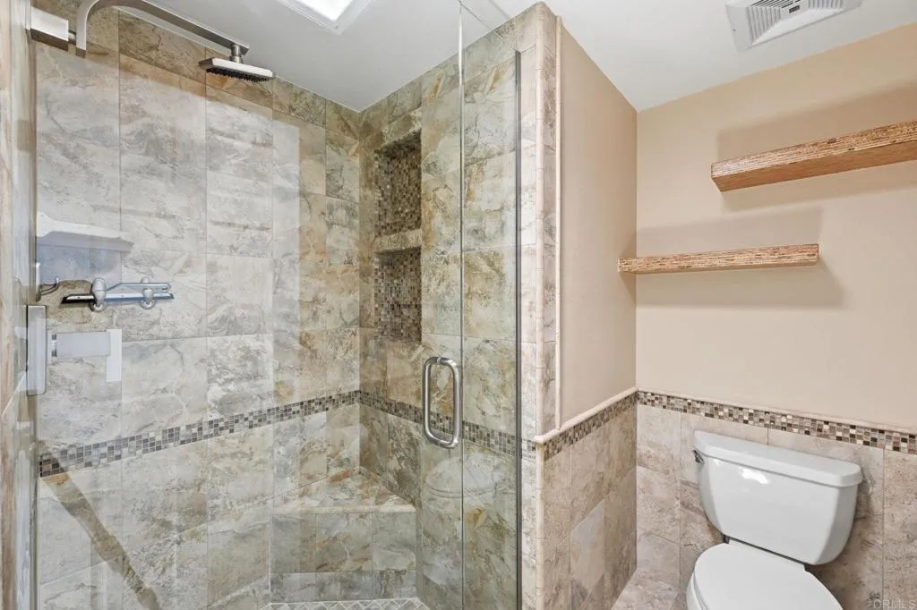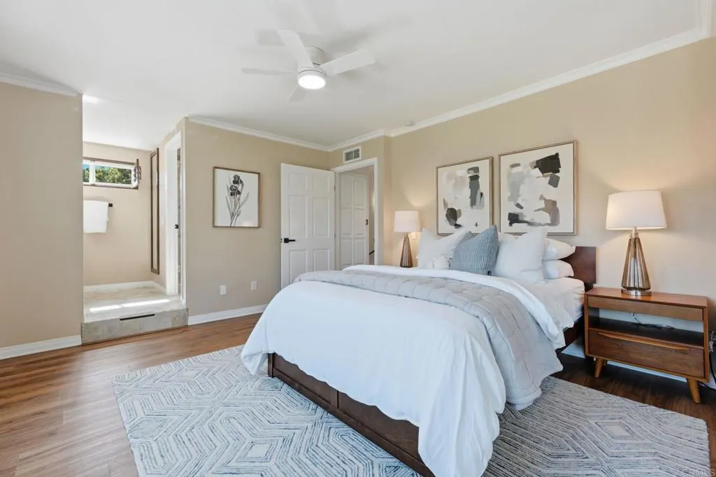 Welcome to the largest floor plan in Seagate Village — a rare corner-unit townhome in the heart of Encinitas offering exceptional space, privacy, and an abundance of natural light. This light-filled end unit stands out with its expansive layout and quiet location within the community. Thoughtfully upgraded throughout, the home features a stunning designer kitchen with custom cabinetry and newer appliances, including a Bosch refrigerator, Bosch dishwasher with water softener, KitchenAid wall oven, and newer water heater — all replaced within the past three years. Luxury vinyl plank flooring runs throughout the home, complemented by custom window treatments and upgraded lighting. Interior designer touches elevate every space, while custom built-ins and generous storage solutions provide both beauty and functionality. The versatile layout includes four spacious bedrooms one of which is set up as an impressive dual home office designed to comfortably accommodate two — ideal for remote work or creative pursuits. Step outside to a peaceful backyard retreat complete with a deck and soothing fountain — a private setting perfect for relaxing or entertaining. A two-car garage adds convenience and additional storage. Residents of Seagate Village enjoy resort-style amenities including a pool and spa, tennis courts, pickleball, dog park, tot lot, and volleyball court — all within a friendly, welcoming community. The HOA covers landscaping, exterior walls, roof, and termite maintenance for added peace of mind. Ideally located within a short distance to shopping and dining and Flora Vista Elementary School. Within the highly regarded Encinitas Union School District and San Dieguito School District. this home offers the perfect blend of space, style, and convenience in one of North County’s most desirable coastal communities.