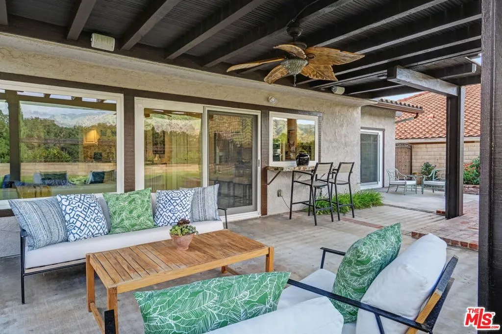 This is the one you've been waiting for: turnkey elegance in north La Verne with immaculate indoor-outdoor flow and endless entertaining opportunities amidst postcard-worthy mountain views. Professional landscaping, custom pavers and ornate masonry flourishes welcome you from the street. Beyond the mosaic tile entry find a spacious great room with vaulted ceilings, Versailles pattern travertine floors, plantation shutters, and a ledgestone fireplace. The updated open-concept kitchen features custom cabinetry, slab stone counters, a backsplash mosaic, and a breakfast bar all within view of the picturesque backyard and a family room enhanced by a wet bar and integrated speakers. Upstairs retire to an airy primary suite with cathedral ceilings and an expansive deck with unobstructed and expansive views. Two additional bedrooms boast plantation shutters and share an updated hall bath. Dual-pane sliders connect the dining and family rooms to both shaded and sun-drenched terraces and a newly installed parklike turf lawn, all framed by fresh professional landscaping and mountain vistas. Additionally, enjoy central heat and air, double pane windows, a direct access garage, and acclaimed Bonita Unified schools.