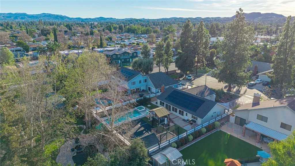 SHOW STOPPER ALERT!!! Welcome to PARADISE, where modern convenience meets LUXURY!! ENERGY EFFICIENT, EXTENSIVELY UPGRADED MAIN HOME 3+2 w/ NEWLY CONSTRUCTED, READY TO MOVE-IN 1+1 ADU w/ HIGH END FINISHES, 30 FULLY PAID SOLAR PANELS, TESLA E/V CHRGR, NEW HEATED-POOL, BASKETBALL HALF-COURT(Mega-Slam), SAUNA *NEW GATES *LOCATED on a QUIET CUL-DE-SAC, fully renovated (8x8)Shed/BONUS SPACE w/ small fridge. From the moment you arrive, the beautiful landscaping and newly paved driveway offers generous space for 6 cars, ensuring a warm and effortless welcome for your visitors. The main home’s brand new modern double doors add security and tie in perfectly with this newly renovated, spectacular SINGLE-STORY. New crown molding/baseboards and brand-new engineered flooring that will last a lifetime! Previous owner installed a NEW ROOF, DUAL-PANE WINDOWS, CENTRAL A/C/HEATING & UPGRADED the ELECTRICAL PANEL. Relax by the glow of the fireplace in the heart of the home/Living room that opens up to the designer-curated farmhouse kitchen that was engineered for the serious chef which flows effortlessly into the dining area to create a seamless indoor-outdoor hosting experience. Boasting professional-grade appliances, large island w/built small oven, Quartz ctops, high-end stainless-steel appliances, WOLF convection oven, pot filler,white shaker-style cabinetry, this culinary masterpiece flows into a sun-drenched dining area, creating a perfect circuit for entertaining guests while overlooking the massive backyard. The spacious primary suite offers a private upgraded bathroom, LED mirrored wardrobe & makeup area. 2 additional bedrooms fully renovated w/ full bathrm, LED lighting and organized closets in all bedrooms. A separate entrance leads you to the BRAND-NEW 480 ft², 1+1 ADU, w/a lavish quartz waterfall island and ctops,ALL appliances incl (electric)stackable washer/dryer, refrigerator, stainless steel range, stove, microwave & dishwasher. Engineered flooring flows throughout the HOME/ADU & SHED(except bath areas) Retreat to your private sanctuary featuring a state-of-the-art 4-person sauna and a brand-new heated pool. The backyard oasis continues w/ a permanent custom cabana, offering a sophisticated setting for starlit gatherings while overlooking the integrated basketball court. Finished w/ premium all-season turf, this space is meticulously designed for effortless, low-maintenance luxury.*ADU permitted. Special property in a prime West Hills location!