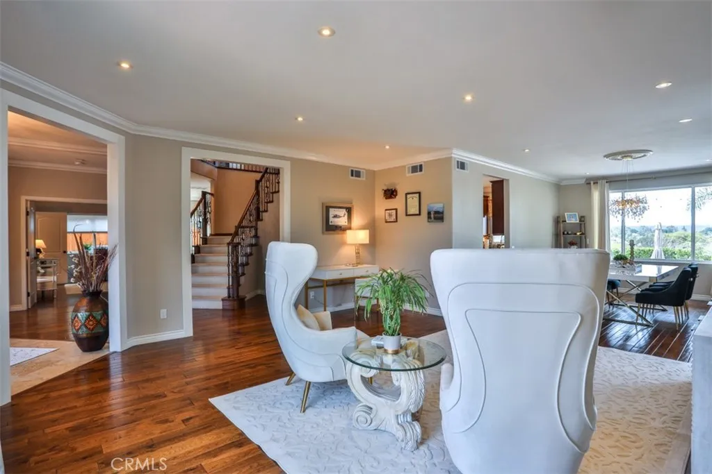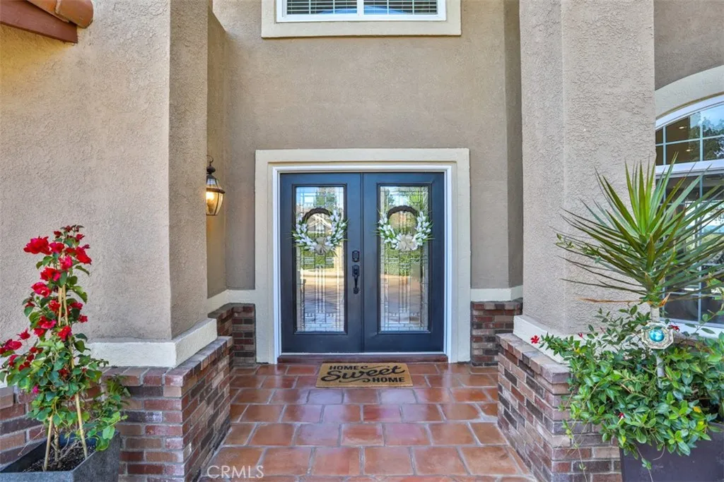Elegant, Sophisticated and Spacious Temecula Residence in Quiet Neighborhood. Inviting Curb Appeal and Charming Water Fountain Lead to Beautiful Double Door Entry. Impressive Foyer, Living Room and Formal Dining Room are Flooded with Natural Light and Gorgeous Lighting Fixtures and Chandeliers Throughout the Home Add Sparkles and Glam. Stylish Kitchen Includes Center Island, Coffee Bar, Walk-In Pantry and Opens to Cozy Family Room with Fireplace and Two Sets of French Doors Leading to Wonderful Backyard. Main Level Also Includes Bedroom/Office, Bathroom and Laundry Room with Direct and Convenient Access to Backyard for Your Pool Guests. Elegant Staircase Leads Upstairs to Luxurious Primary Suite with Vaulted Ceilings, Oversized Soaking Tub, Separate Shower, Two Walk-In Closets with Organizers and Double Vanity. Two Additional Bedrooms Have Direct Access to Large Balcony to Enjoy Forever Views and Spectacular Sunsets. Unwind and Relax in Your Private Theater and Enjoy Endless Movie Nights on a Large Screen TV. Home Theater Can Be Easily Turned Into Second Master Bedroom, and it Includes Spacious Bathroom. Dedicated Home Office/Work/Study Space with Four Desks Is Also Located Upstairs. Enjoy Entertaining in Style; Sparkling Salt Water Pool, Spa and Oversized Patio. BBQ Island is Included. Step Down to the Orchard with Numerous Fruit Trees; Lemon, Lime, Orange, Apple, Asian Pear, Plum and Peach. Relax on Your Bottom Patio, or Treat Yourself to Yoga or Workout Session. Opportunity to Plant More Trees or Grow Your Garden on the Remaining Part of Your 1/3 Acre Lot. Close Proximity to Town, Excellent Schools, Shopping, Dining, Golf and Temecula Wine Country. No HOA, Low Property Tax Rate, Paid Solar System. This Truly Stunning Property is Perfect Blend of Luxury and Comfort. 3.25% Assumable Loan for Qualified VA Buyers. Welcome Home!