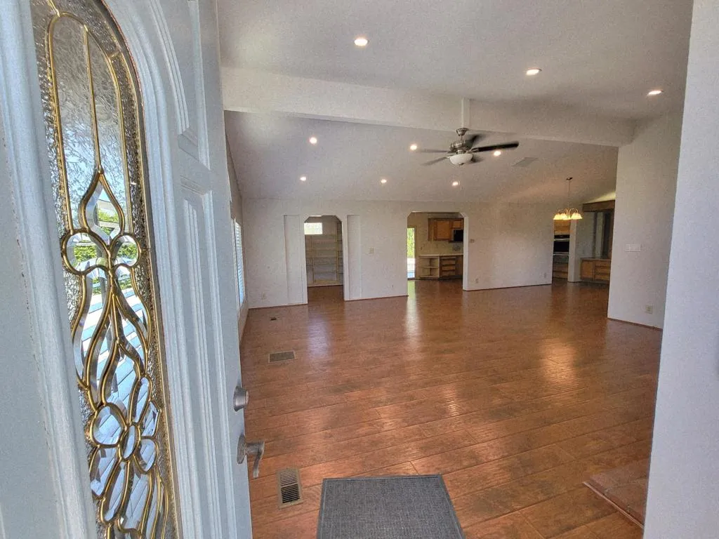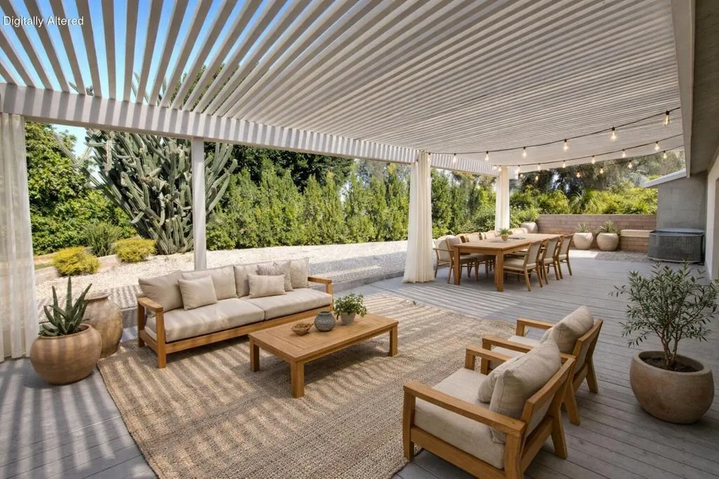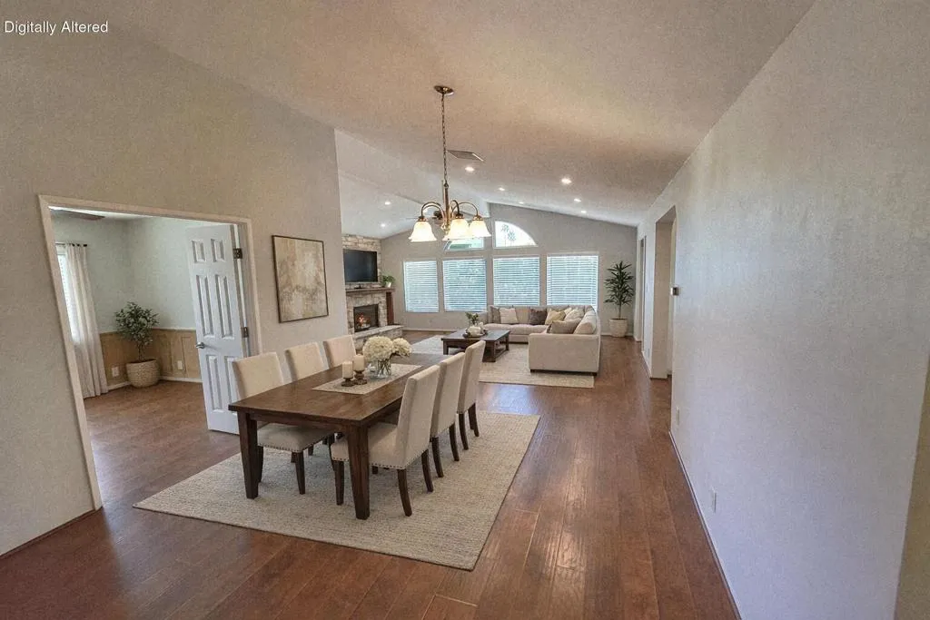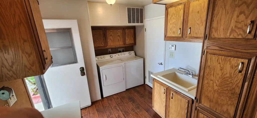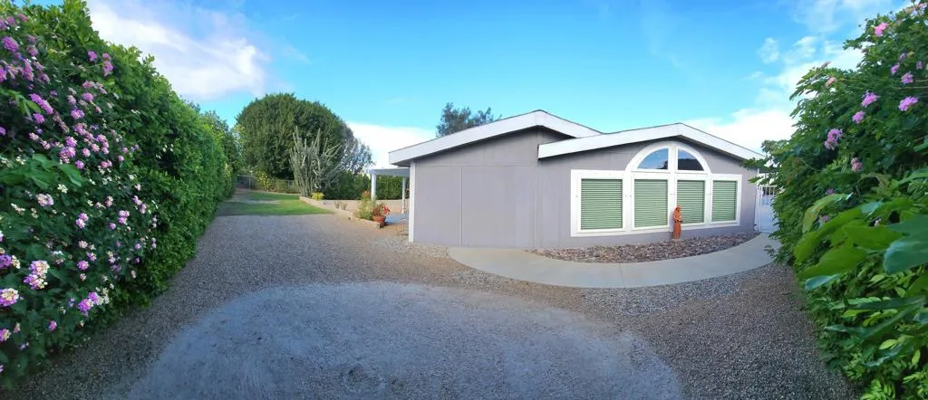 This distinctive residence provides 2,040 square feet of interior living space on a private 7,840 square foot lot, situated adjacent to a greenbelt and conveniently within walking distance of the community pool, spa, and tennis court. The property includes a generously sized detached garage with a separate entrance suitable for a golf cart. The expansive living room features dual-pane windows, high ceilings, premium laminate flooring, and a fireplace. An adjoining dining area offers ample space, ideal for hosting large gatherings. The kitchen is equipped with modern appliances, abundant counter space, oak cabinetry, and a breakfast nook that enjoys views of the patio and connects seamlessly to a cozy library. The primary suite is designed with an oversized walk-in closet and an updated bathroom featuring a walk-in shower. Additional guest bedrooms are spacious and offer plenty of storage. A sizable laundry area incorporates extra cabinetry and a built-in desk, providing an excellent workspace for computer use. The patio is great for entertaining, facing the greenbelt while maintaining privacy. Located within Palm Desert Greens, a prestigious 55+ community where you OWN the LAND, the monthly HOA fee of $400 covers cable TV and internet, trash service, 24-hour guard-gated security, FREE GOLF, and more. Please contact us to schedule a tour of this exceptional property and discover why it is an outstanding choice for your next home.