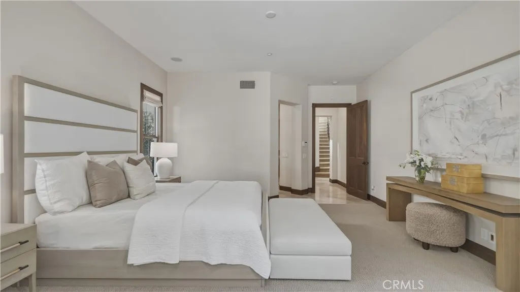 Set within the prestigious guard-gated Coastal Canyon enclave of Sausalito, this thoughtfully upgraded residence is ideally positioned at the end of a quiet cul-de-sac, offering enhanced privacy and a peaceful setting surrounded by open green spaces. The expansive, light-filled floor plan features four generously sized bedrooms, four full bathrooms, powder room, dedicated office, and a spacious bonus room. Designed for seamless indoor-outdoor living, the main living areas open to multiple entertaining patios, a custom built-in bar and barbecue area, and a private resort-style pool and spa—creating an inviting environment for both everyday living and gatherings. An upper-level deck provides tranquil ocean views and additional outdoor space to relax and unwind. Interior upgrades include travertine flooring throughout much of the main level, new carpet, custom crown moldings, extensive woodwork, and fresh interior paint throughout. The gourmet kitchen is appointed with Viking and Sub-Zero appliances, granite countertops, ample cabinetry, and opens directly to a spacious great room ideal for entertaining and casual living. The home is complete with a main-level primary suite and a secondary guest bedroom, offering exceptional convenience and flexibility for guests or multi-generational living. The property offers both tranquility and convenience, just moments from premier shopping, world-class dining, and Southern California’s finest beaches.