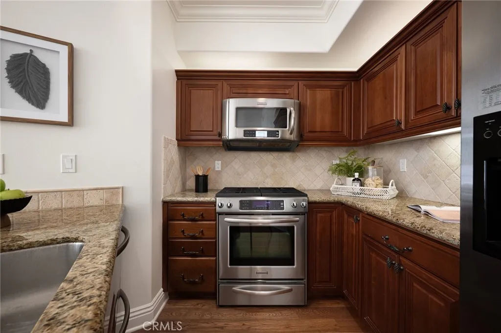Welcome to Rolling Hills Villas, a well-maintained and highly desirable 55+ community located in the heart of Rolling Hills Estates. Unit 302 offers comfortable, low-maintenance living in one of the Palos Verdes Peninsula’s most convenient and walkable settings. This light-filled home features an open living and dining area with a cozy fireplace and direct access to a private balcony with greenery views, ideal for morning coffee, fresh air, or a quiet moment at the end of the day. The kitchen is thoughtfully designed with granite countertops, stainless steel appliances, and ample cabinetry, providing both function and ease for everyday living. The primary bedroom is generously sized with truly excellent closet space and is complemented by a full bathroom with classic finishes. Additional highlights include in-unit stackable washer and dryer, air conditioning, recessed lighting, and secure gated parking. Elevator access adds everyday convenience. Rolling Hills Villas is known for its welcoming common areas, including a beautifully appointed central atrium with a tranquil fountain and an upper level deck featuring tables, and lounge seating - perfect for entertaining or relaxing with neighbors and friends. Ideally located just steps from shopping, grocery stores, pharmacy, medical offices, restaurants, the library, post office, Norris Theatre, Peninsula Center, Promenade PV, and movie theaters. Scenic hiking trails, golf courses, and local parks are only minutes away. A wonderful opportunity to enjoy easy Peninsula living in a wonderful community with excellent amenities, a strong sense of place, and exceptional proximity to daily necessities. Trust Sale.