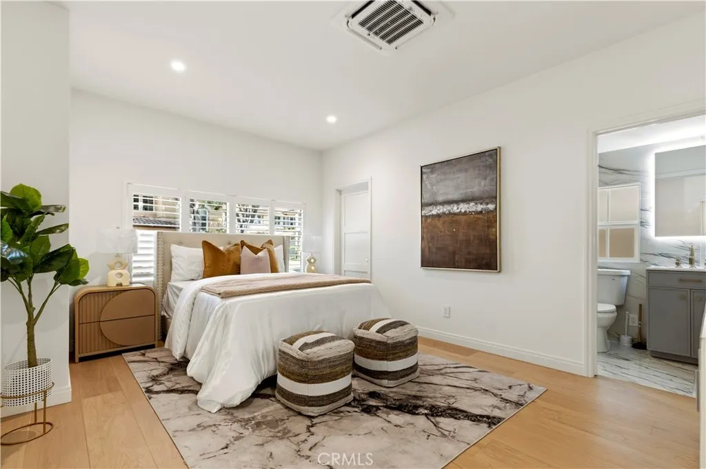 Nestled on a premium cul-de-sac in the highly sought-after, 24-hour TWO guard-gated Trailwood community of Northwood Pointe, this sharply redesigned and rebuilt home seamlessly blends modern style with exceptional function. A dramatic entry welcomes you with soaring ceilings and an elegant spiral staircase, setting the tone for the thoughtfully curated designer finishes found throughout the home. The open-concept floor plan flows effortlessly from the stylish family room—featuring a sleek ultrasonic water-vapor fireplace—and adjacent bar area to the backyard, where triple French doors open to a serene outdoor retreat for summer barbecues, morning coffee, or evening cocktails. At the heart of the home, the gourmet kitchen showcases custom countertops and cabinetry, premium stainless steel appliances, and a large center island—a stunning centerpiece for cooking, dining, and entertaining. The main level offers two versatile suites: one is ideal for a home office, gym, or playroom, while the other is perfectly suited for guests or multigenerational living. Upstairs, the luxurious primary suite features a spa-inspired bath, two separate walk-in closets, and private patio retreat. Two additional ensuite bedrooms and a convenient laundry room complete the second level, offering both comfort and practicality for everyday living. Thoughtfully renovated throughout!! New plumbing, electrical, roofing, drywall, insulation, and exterior stucco; smart home features including nest thermostats, doorbell and Sonos sound system; multiple HVAC systems, water heaters, new appliances, back yard—too many to list. Residents enjoy resort-style amenities, including private parks, playgrounds, pools and spa, tennis courts, BBQ areas, scenic hiking trails, and tree-lined sidewalks. The community also hosts beloved annual events such as the Harvest Festival and Snow Day, fostering a warm, close-knit neighborhood feel. Located within one mile of award-winning schools—Canyon View, Sierra Vista, and Northwood High—and just moments from parks and the Hicks Canyon Hiking & Riding Trail, and and premier shopping and dining at Orchard Hills, NorthPark, and Northwood Centers. With no Mello-Roos and low tax, low HOA, this exceptional home presents a rare opportunity in one of Irvine’s most desirable communities. Must-see!
