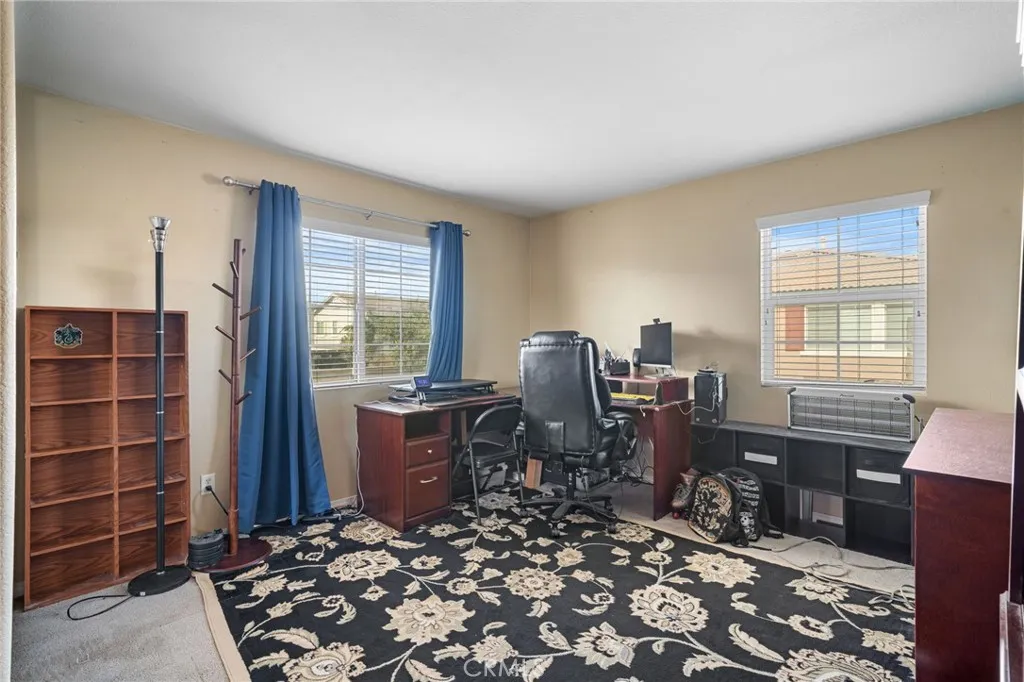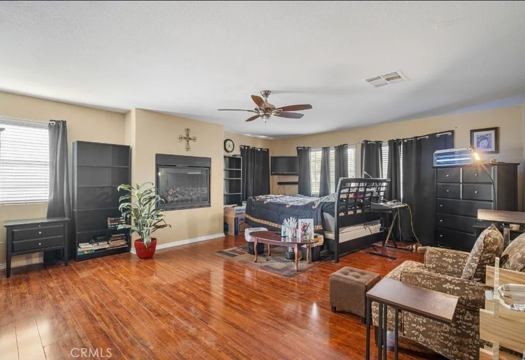 Featuring 3,206 square feet of living space, this 5 bedroom, 3 bathroom home is tucked within a cul-de-sac and includes a 3-car garage. Built in 2006 with a low HOA of $78 per month, the home features fresh interior paint and new flooring in the kitchen, giving it a clean, updated feel. The kitchen is open to the family room, creating a comfortable space for everyday living and gatherings. A downstairs bedroom, ideal for guests, extended family, or a private office, sits just across from a full bathroom with a walk-in shower. Upstairs, you’ll find generously sized secondary bedrooms, a spacious loft ideal for a game room, media space, or additional entertaining area, and a convenient upstairs laundry room. The primary suite is extra large and features an oversized walk-in closet with plenty of room for storage and organization. The 7,841 square foot lot offers a backyard designed for entertaining, complete with a covered patio, stamped concrete, gazebo, and a small putting green. Centrally located near the 15 freeway, shopping, and schools, this home offers space and flexibility in a cul-de-sac setting.
