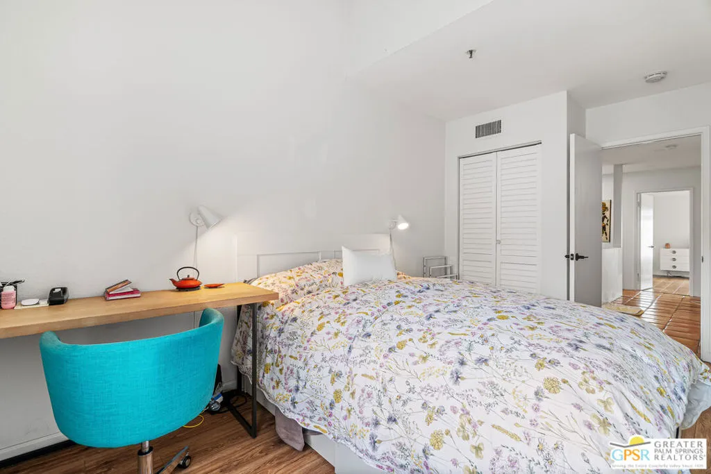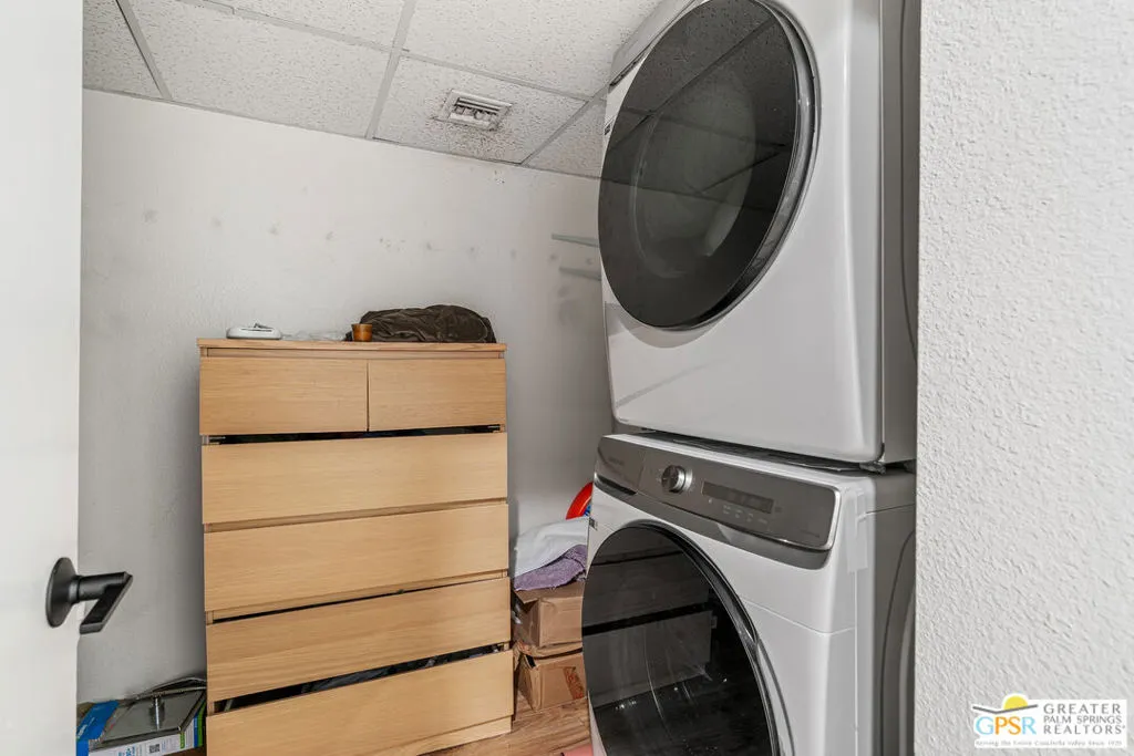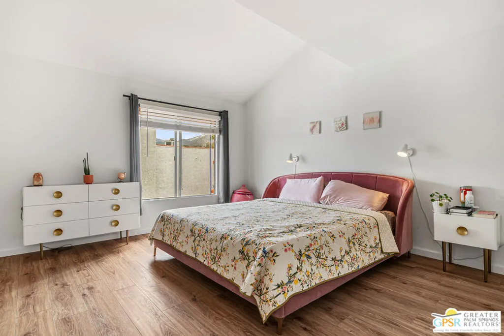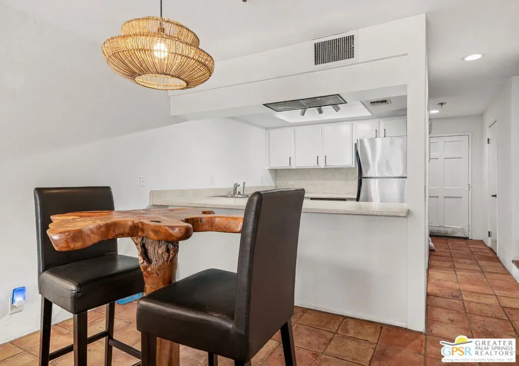 Slip into effortless Palm Springs living with this irresistible 2-bedroom condo, perfectly positioned for an easy stroll to vibrant downtown. Tucked into one of the community's most coveted locations, this home serves up sun-drenched southern patio exposure and captivating mountain views the kind of backdrop that makes every morning coffee feel like a getaway. Inside, thoughtful updates elevate the vibe. A stylish half bath refreshed in 2021, sleek laminate flooring in the bedrooms and laundry room, and a cozy gas fireplace in the living room create a space that's equal parts comfort and polish. The full-size in-unit laundry with Samsung "smart" washer and dryer plus a dedicated utility/storage closet keeps life beautifully convenient. The oversized private patio is made for lounging and entertaining, with easy access to the sparkling pool just below. Parking is effortless with gated driveway entry from Arenas Road and your own fully covered assigned space steps from the front door. The HOA keeps ownership simple, covering water, gas, trash, and roof. Residents enjoy resort-style amenities including four saltwater pools and spas, lush mature landscaping with fruit trees, and a clubhouse featuring a sauna, kitchen, and community room.Even better: a highly desirable private land lease (no BIA approval required) streamlines escrow. Lease runs through 2064 at $225.33/month. Location? Exceptional. You're moments from restaurants, theater, coffee, and the best of in-town living with a 30-day rental minimum offering flexibility. This is the one that feels like vacation every single day.