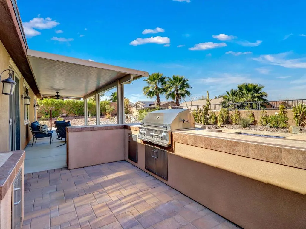 The Gallery gated community is centrally located in Palm Desert, minutes away from the Eisenhower Medical Campus, numerous restaurants, and an eclectic mix of stores. The low monthly HOA fee of $170 includes Spectrum internet and cable. The ideally elevated location of this stunning home has breathtaking panoramic sweeping views of the mountains. The VISUAL APPEAL is definitely evident. Now let's check off your next home's FUNCTIONALITY...>Impeccably maintained and smartly configured floorplan of 2361 sqft, includes 3 bathrooms and 3 spacious bedrooms, highlighted by 2 well separated primary bedrooms, all with woodlike floors. > The Great Room with ceramic tile floors and fireplace opens to the Kitchen and Dining Room becoming the true heart of the home enhancing entertainment. The windows allow natural light and view of the backyard.. AMENITIES INCLUDE..> 24 fully owned Solar Panels, greatly reducing energy costs. > Solar Pool Heating Panels also save pool heating costs. > Under kitchen sink water filter plus a whole house water filtration system. >Modern technology includes a smart Ring entry system with app integration and an electric vehicle charging station. BACKYARD FEATURES...> 50 ft. pool with dual waterfall feature, and shallow lounging area. > Cascading Grotto waterfall set in desert landscaping,> Solid Patio Cover. with cooling water mist system.> Above Ground Spa. > BBQ Entertainment Center. Most furniture shown are to be included. A MUST SEE home to fully appreciate.