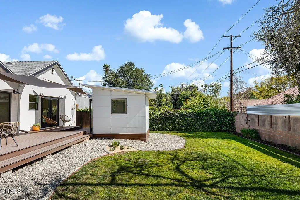 Updated and refined, 3270 Hermanos Street pairs thoughtful upgrades with a calm, contemporary sensibility in a sought after pocket of east Pasadena.With smooth stucco exterior walls, dual pane windows, and recently refreshed fire-hardened landscaping, the home presents a crisp first impression, both polished and practical.Inside, light fills an open living and dining area anchored by a decorative fireplace with a raised-bench hearth. The generous deck extends directly from these public rooms, creating easy indoor-outdoor flow and an inviting setting for gatherings, quiet mornings, or dining under the open sky. Finishes throughout feel cohesive and current, complementing the home's clean architectural lines.The kitchen has been updated with classic subway tile, shaker cabinetry, and ample workspace, blending timeless materials with modern function. Just beyond, the direct access attached two-car garage offers convenience and additional storage.Private quarters are equally well considered. The primary suite features a spacious bath with a soaking tub, separate shower, and dual sink vanity, designed for both comfort and ease. Additional bedrooms are bright and adaptable, while a separate Studio Shed office studio provides flexible bonus space, ideal for creative work, focused study, or a retreat from the main house.Set below the natural beauty of Eaton Canyon, this quiet neighborhood enjoys proximity to shopping at Hastings Ranch, the Hastings Branch Library, Vina Vieja Park, and the weekly farmers market at Victory Park. A Metro station just blocks away adds commuter friendly access.With its meaningful updates, versatile studio, and seamless connection to the outdoors, 3270 Hermanos offers a move in ready opportunity in one of Pasadena's most appealing settings.