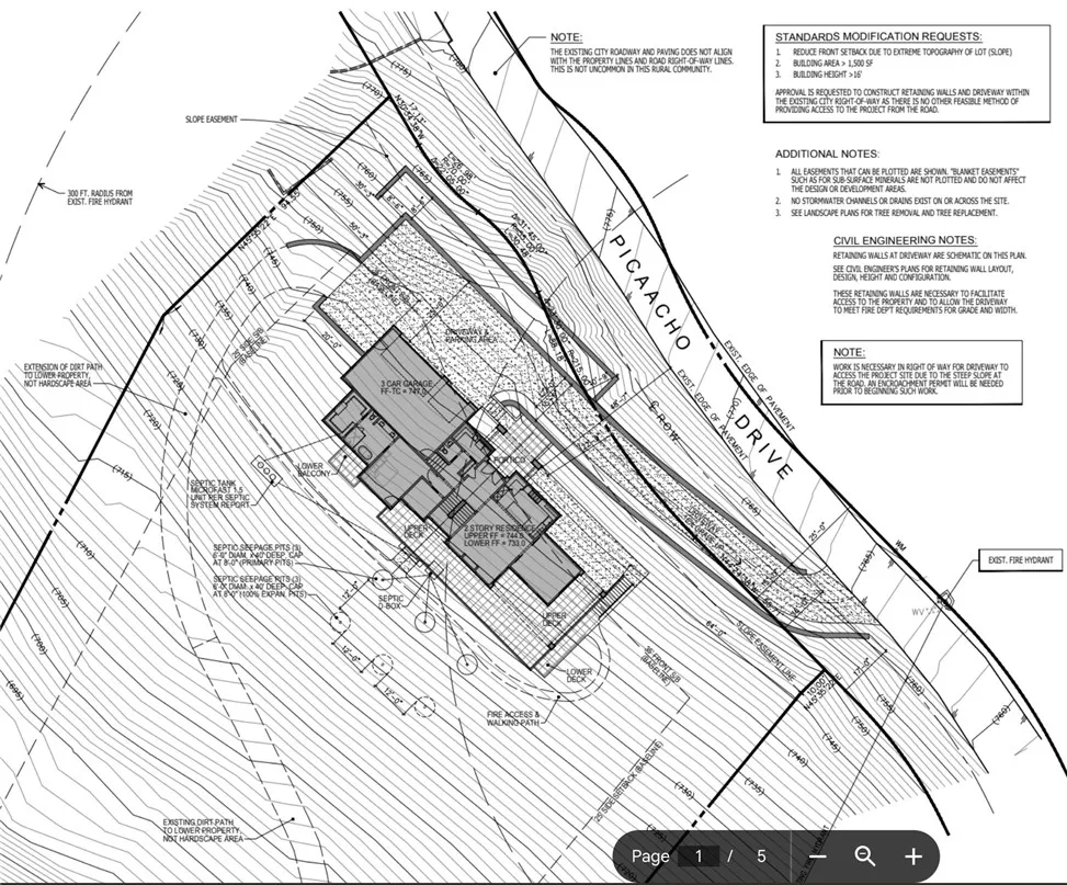 Vacant panoramic view lot with completed architectural plans for a custom luxury residence in the prestigious hills of La Habra Heights. This exceptional approximately 1.6-acre hillside parcel offers breathtaking city-light and ocean views and the opportunity to continue a thoughtfully designed approximately 3,100 square foot two-story home featuring 4 bedrooms, expansive view decks, and an attached 3-car garage, all positioned to maximize privacy and surrounding scenery. Extensive site studies and engineering work have already been completed, including soils investigation and septic feasibility, providing a significant head start for the next owner. The project has progressed through Planning, Engineering, Fire, and Landscape review with the City of La Habra Heights and is pending final civil engineering completion prior to RTI clearance, with approximately $3,500 remaining for grading plan submittal and civil clearance. The property features approximately 218 feet of frontage, approximately 387 feet of depth, and about 180 feet of width across the lower portion of the lot, creating a generous building envelope and flexible design potential. A rare small flat pad at the lower portion of the property offers additional possibilities for a future ADU, guest house, studio, pool area, garden retreat, or outdoor entertaining space, subject to city approval. Surrounded by multi-million-dollar estates and tranquil hillside landscapes, this is a rare opportunity to acquire a premier view lot with meaningful architectural and engineering progress already in place. On exceptionally clear days, Catalina Island may be visible in the distance. All information deemed reliable but not guaranteed. Buyers to independently verify plans, permits, utilities, boundaries, and development requirements.