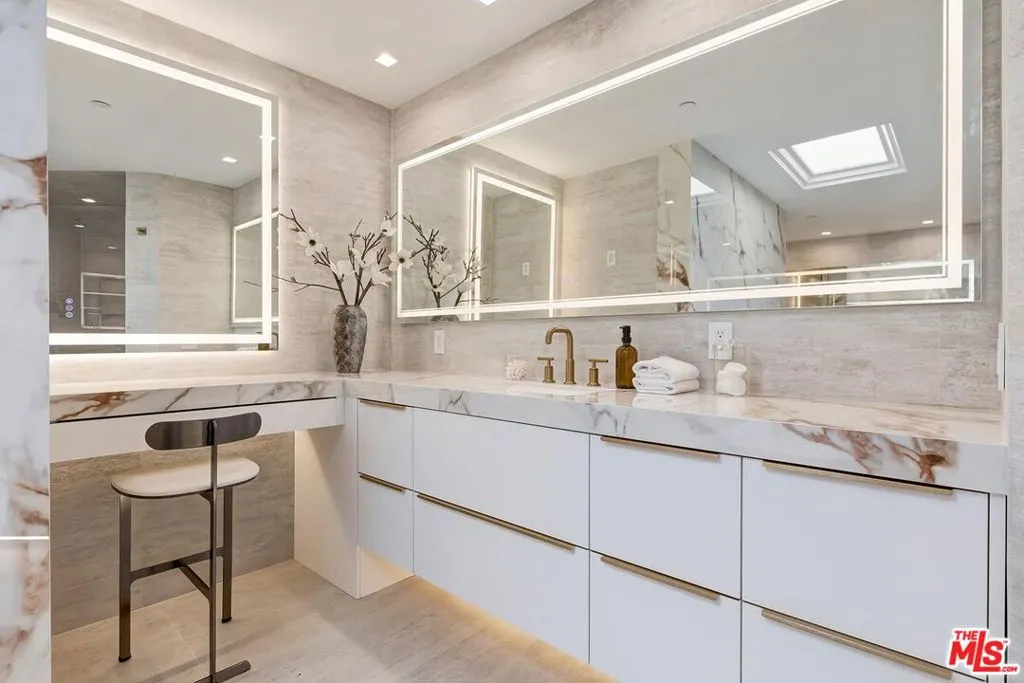 This newly remodeled 2-bedroom plus den Penthouse offers contemporary design and modern comfort in the prestigious IV Seasons Condominiums, located on a quiet, tree-lined street in Beverly Hills. Every detail has been thoughtfully updated, showcasing brand-new finishes throughout. Wide plank oak floors, soaring ceilings, and expansive floor-to-ceiling windows fill the space with light and create a sleek, open atmosphere. An expansive terrace provides a seamless indoor-outdoor flow and serene tree-top and city views. The reimagined gourmet kitchen features sleek top-of-the-line appliances, custom cabinetry, and a cozy breakfast area with balcony overlooking lush greenery and city views. The primary suite exudes a private retreat, complete with two large custom walk-in closets and a brand-new five-star hotel-inspired bath featuring designer finishes, a soaking tub, and a large glass-enclosed shower. The spacious second bedroom suite includes its own custom closets and a modern en-suite bath. The versatile den offers space for a home office, media room, or additional living area, and a fully redesigned laundry room adds convenience. Residents enjoy luxury amenities, including 24/7 doormen, valet parking, a newly updated pool and spa, gym and ample storage. This all in an ideal Beverly Hills location!