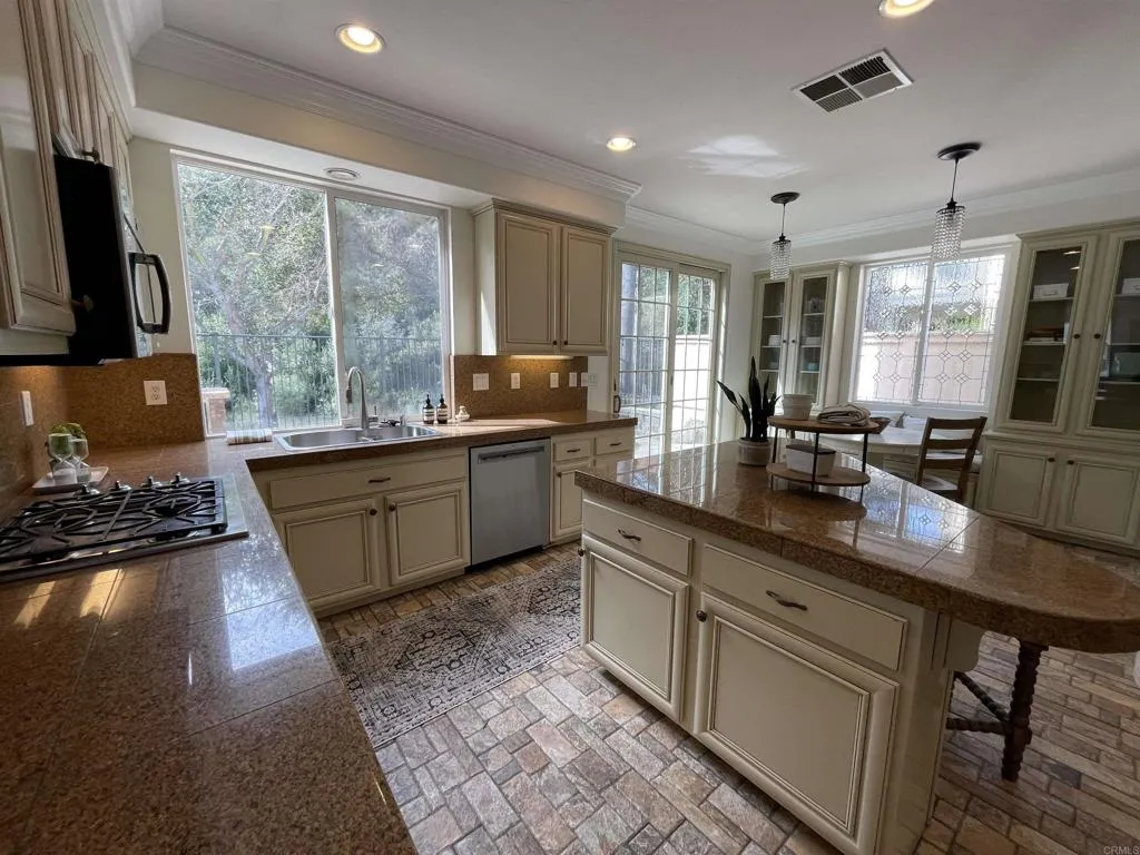 Stunning, move-in ready Westport in Stonecrest Village — Serra Mesa’s most desirable tree-lined enclave. This Floor Plan 3 home, the largest in Stonecrest at 2,789 sq ft, is a rare offering on a corner lot with canyon views. The residence features four bedrooms and three full bathrooms, optional 5th bedroom or office, fresh flooring and paint throughout, and a generous open layout with multiple living areas ideal for entertaining. The well-appointed kitchen opens to the dining and family areas, while the finished rear yard with built-in BBQ creates an exceptional outdoor living and entertaining space. Additional highlights include an attached garage with extra storage and the privacy and curb appeal afforded by the corner lot. Stonecrest Village boasts a plush clubhouse with pool, tot lot, and a state-of-the-art gym, plus convenient access to I-15 and I-8 for quick trips to downtown, the airport, or Mission Valley. Close to shopping, dining, parks, trails, and top local schools, this largest-floorplan Westport on a corner lot with canyon views and a finished entertaining yard is a unique opportunity in the community