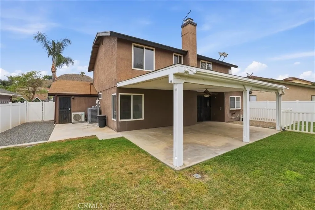 Beautifully updated and thoughtfully designed, this spacious 4-bedroom, 3-bathroom home offers a versatile and functional floor plan in a highly desirable location. Featuring a rare downstairs bedroom and full bathroom, it’s ideal for guests, multigenerational living, or a private home office setup. Upon entry, you’re welcomed by soaring vaulted ceilings and an abundance of natural light flowing through the formal living and dining areas, complemented by fresh interior paint and newer flooring throughout both the main level and upstairs. The layout seamlessly connects to the inviting family room, creating a comfortable space for everyday living and entertaining. The kitchen is both functional and stylish, featuring granite countertops, stainless steel appliances, rich cabinetry, ample storage, and generous counter space, all positioned to overlook the main living areas and backyard, making it perfect for both daily living and hosting. Upstairs, the primary suite offers a relaxing retreat with a walk-in closet and a beautifully updated bathroom complete with newer tile work, quartz countertops, upgraded fixtures, and modern finishes. Secondary bathrooms have also been tastefully updated with refreshed vanities, tile showers, and contemporary details, providing a cohesive feel throughout the home. Additional improvements include dual-pane windows throughout and an updated air conditioning system, enhancing comfort, efficiency, and year-round livability. Step outside to a spacious backyard designed for year-round enjoyment, featuring a custom covered patio with recessed lighting and an exterior ceiling fan—perfect for entertaining, dining, or relaxing. The yard offers plenty of room for gatherings, play, pets, or future customization such as a pool, garden, or outdoor kitchen. The three-car garage has been upgraded with fresh paint and a durable epoxy floor, offering a clean, finished space ideal for parking, storage, hobbies, or a home gym, along with an extended driveway providing additional parking and convenience. Conveniently located near Indian Hills Golf Course, parks, shopping centers, dining, and local schools, this move-in ready home combines space, thoughtful upgrades, functionality, and an excellent location into one exceptional opportunity you won’t want to miss.