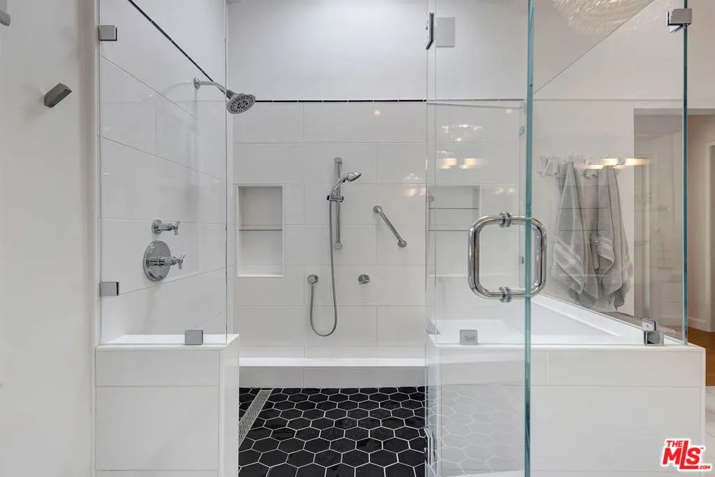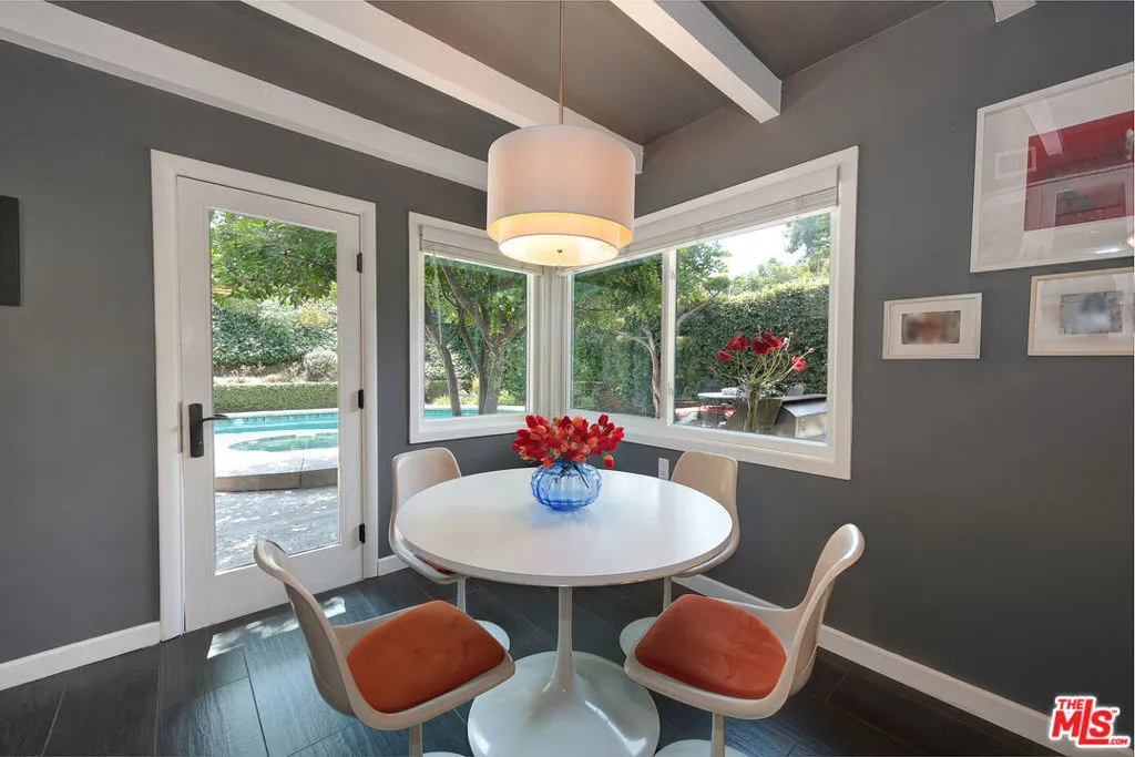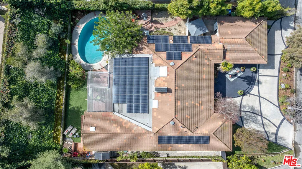 Unmatched value meets modern luxury in this reimagined Mid Century Ranch masterpiece. With over $300k in renovations, this stunningly updated showplace in coveted Royal Woods is a rare find. Perfectly situated on prime Meadowcrest Road near Mulholland, this single level estate offers a sophisticated lifestyle for those ready to move in and immediately enjoy the good life. Step inside to discover a bright, airy sanctuary defined by soaring ceilings, sun drenched skylights, and wide plank French white oak floors. The seamless open floor plan flows from a grand great room anchored by an Arizona stone fireplace to a refined living and music area. The spacious dining room, featuring solid pane French doors, opens directly to a private backyard oasis complete with a covered outdoor living room, water wise turf, and a sparkling pool and spa. The thoughtful layout includes a four bedroom center hall wing where every bathroom has been tastefully updated. The primary suite serves as a true retreat with its spa-caliber bath and walk in closet, while the fourth bedroom features stylish barn doors perfect for a modern home office. Additionally, a separate fifth bedroom suite with its own private entrance offers the ultimate flexibility for a guest wing or a secluded professional workspace. The heart of the home is a chef's kitchen boasting quartz counters, premium stainless appliances, and a charming breakfast nook. Beyond the main living areas, the home is equipped for the future with a 40 panel solar system for maximum energy efficiency. An oversized 2.5 car garage provides extra workshop space and is currently utilized as a vibrant game room. Located just minutes from the Westside, this exquisite estate combines modern amenities with timeless character. Come experience the magic of Meadowcrest Road today. PRICED TO SELL!
