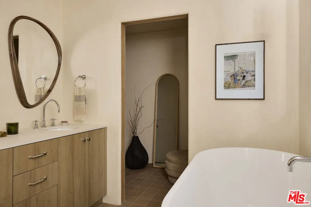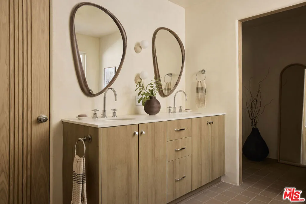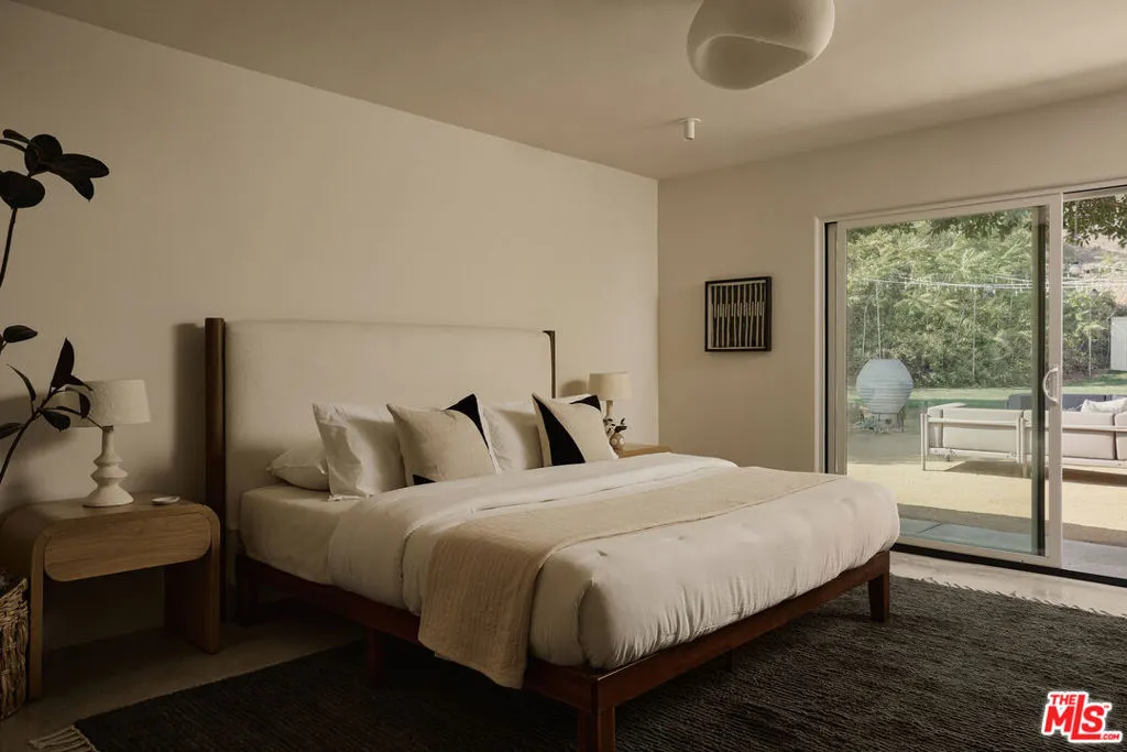 Designed by Bungalowe, Round Top is a thoughtfully reimagined 3 bedroom, 2 bath home set into the hills on a generous 6,047 sq ft lot. Private, calm, and designed around indoor and outdoor living.Inside, smooth concrete walls and new hardwood floors create a quiet, spa like atmosphere. Three expansive sliding doors blur the line between inside and out, filling the home with light and opening directly to the garden. The kitchen is clean and composed, with Caesarstone countertops, polished chrome details, and sculptural lighting, including a statement fixture that anchors the space without overpowering it.Behind the walls, all major systems have been upgraded, including new plumbing, electrical, HVAC, and a tankless water heater, offering the confidence of a true, comprehensive renovation.Outdoors, the property unfolds into a fully fenced private retreat. Newly designed landscaping, privacy trees, layered custom lighting, and Olive Atelier water features set the tone for relaxed evenings and effortless entertaining. The expansive lot provides space to gather, unwind, and enjoy Southern California living in complete privacy.Round Top offers more than a home. It offers a rhythm. Little Ripper mornings. Casa Bianca evenings. Milkfarm gatherings that stretch long into the night.With a two car garage, ample street parking, and a quiet hillside setting, this home feels grounded, intentional, and easy to settle into.