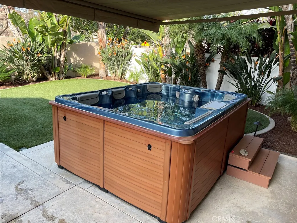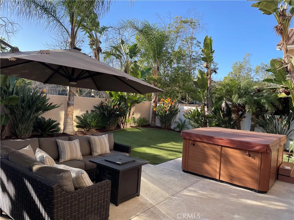 Beautifully maintained move-in ready home in the highly desired California Tesoro community of Rancho Santa Margarita with unlimited access to various active lifestyle amenities, including the Lake Santa Margarita Beach Club, at the incredibly low SAMLARC HOA fee of just $91 per month! The attractive architectural style of this home is evident as you enter the front door with the option to walk downstairs toward two lovely bedrooms and a comfortable family room that opens up to the beautiful back yard or head upstairs toward a well-appointed kitchen, comfortable living room, and primary suite. Stepping into the backyard of this home is like being transported into a fancy resort with attractive low maintenance synthetic grass, wonderful tropical landscaping, and amazing 5-person Thermo Spa Hot Tub sheltered by an attractive roll out awning. The luxurious patio furniture with fire pit are also included in the sale! Come see this home today!