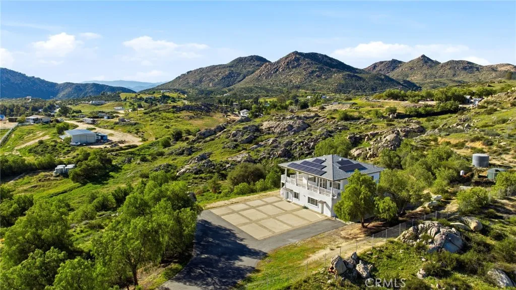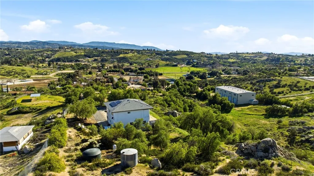 Opportunity knocks with this hidden gem located in the picturesque Temecula Wine Country, conveniently nestled between E. Benton Rd. and De Portola Road. This distinctive estate with freshly painted exterior features a single-family home with an attached ADU, thoughtfully designed as two separate units. The downstairs unit offers 1,600 sq. ft. of comfort, including three bedrooms, one and a half baths, a full kitchen, and spacious living and dining areas. A dedicated laundry room and access to a fenced backyard make this unit both functional and inviting, enhanced by modern upgrades like white cabinetry, stainless steel appliances, granite countertops, and stylish tile flooring throughout. Upstairs, you’ll find a bright and airy unit that boasts high ceilings and two bedrooms, one bathroom, kitchen, living and dining spaces and outdoor laundry room. Step outside to enjoy the large wraparound terrace, which offers breathtaking panoramic views of the surrounding wine country. The property is equipped with a paid solar system and a newer electrical panel, while the beautifully landscaped driveway lined with mature trees provides ample parking. Set on 8.34 acres of rolling hills, this estate also includes a substantial RV garage featuring four bays: one at 3,000 sq. ft. and three at 1,500 sq. ft. each, totaling an impressive 7,500 sq. ft. with soaring 40-foot ceilings. Recently appraised at $1.225 million in July 2025, the property comes with termite clearance, cleared septic and well certifications, along with a newly replaced well pump. Whether you envision an investment opportunity with multiple rental streams or a serene residence where you can live in one unit while renting out the other and the RV garage, this property offers tremendous potential. Some photos have been virtually staged to highlight the possibilities that await.