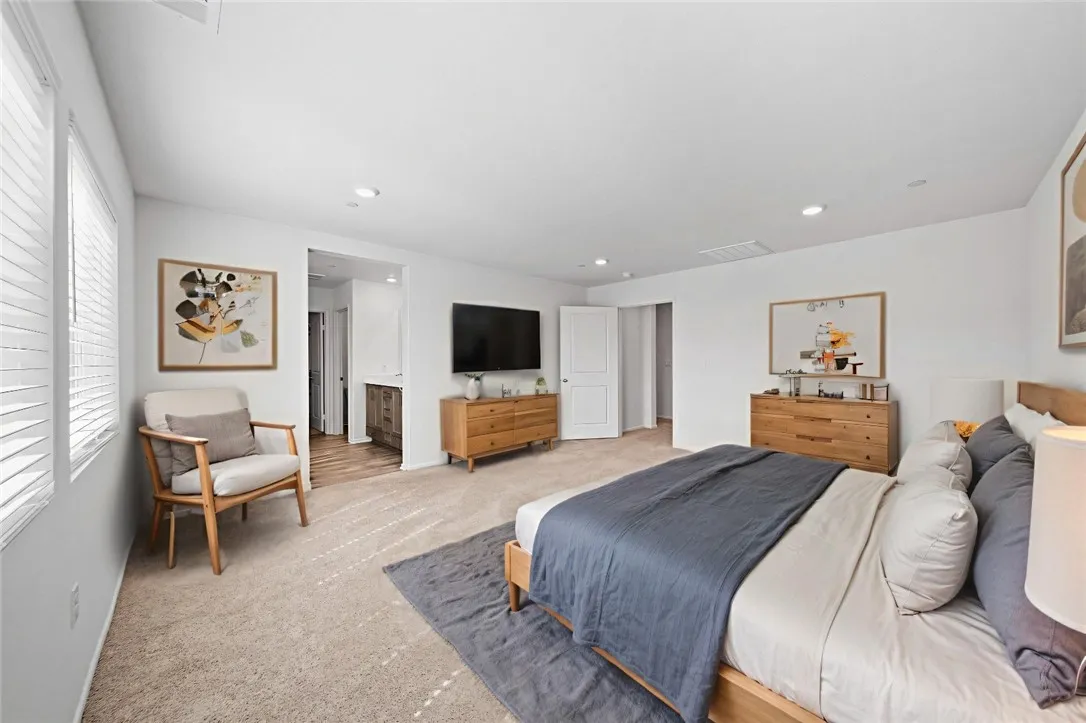 VA & FHA LOAN APPROVED! NO HOA! Motivated seller! Why wait to build when you can move right into NEW construction? Meticulously taken care of and thoughtfully designed, this stunning 2,311 sq. ft. two-story home in Winchester offers the perfect blend of modern style, functionality, and energy efficiency with NO HOA and PAID OFF Solar! This home includes one bedroom and a full bathroom downstairs ideal for guests, extended family, or a private home office plus a spacious upstairs loft for flexible living space. The owner has invested in backyard upgrades, including additional concrete slabs off the patio and in the corner of the yard, creating the perfect foundation for your future outdoor projects. Enjoy the privacy of a premium corner lot with NO side neighbors and NO backyard neighbors, offering peace, quiet, and extra space to make the backyard your own. MOVE-IN READY! with room to expand your vision. The open-concept island kitchen is the heart of the home, complete with elegant Bianco Tiza quartz countertops, built-in stainless-steel appliances, a pantry closet, and an inviting dining area. Beautiful Alto stained maple shaker-style cabinetry, recessed lighting throughout, plush carpet in bedrooms, closets, and stairs, and durable vinyl flooring in the main living areas create a clean, modern aesthetic. Upstairs you’ll find a spacious primary suite with ensuite bathroom and walk-in closet, three additional bedrooms, a full bath, and a convenient laundry room.Additional highlights include: Direct-access 2-car garage pre-plumbed for an electric vehicle, Smart Home features throughout, Landscaped and irrigated front yard,No homes behind or on one side for added privacy! Conveniently located near parks and freeway access, with a future community park planned featuring a tot-lot, basketball court, baseball field, and picnic areas for the whole family to enjoy. Modern. Energy-efficient. Move-in ready!!!