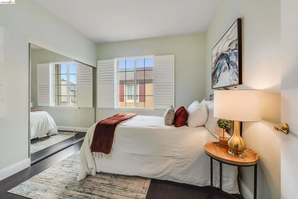Live the waterfront dream in this stunning 2-bedroom, 2-bathroom townhouse-style condo in Richmond’s highly desirable Marina Bay. The open-concept living and dining area features recessed lighting, large windows with shutters, and sleek hardwood-style floors. The modern kitchen boasts quartz countertops, a breakfast bar, a newer hood and stainless steel appliances. The private balcony, which connects to the main living area, invites you to enjoy fresh air for a relaxing morning or with friends. The in-unit washer and dryer add everyday convenience, making this home as functional as it is stylish. A true standout feature is the interior-access attached one-car garage with EV charger, offering secure parking plus ample storage space. Enjoy an additional deeded outdoor parking spot for guests or a second vehicle. This gated community also offers resort-style amenities, including a pool and sauna within a peaceful waterfront environment. Step outside to scenic walking and biking trails along the San Francisco Bay Trail. Enjoy nearby shops, cafés, and dining at Marina Bay Plaza. Commuters benefit from easy access to I-580 and the Richmond Ferry Terminal with direct service to San Francisco, while Berkeley, Emeryville, and Oakland are just a short drive away. This one won't last!
