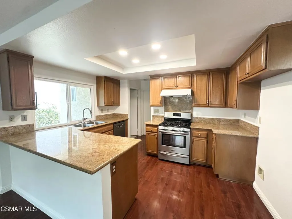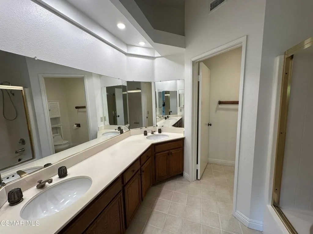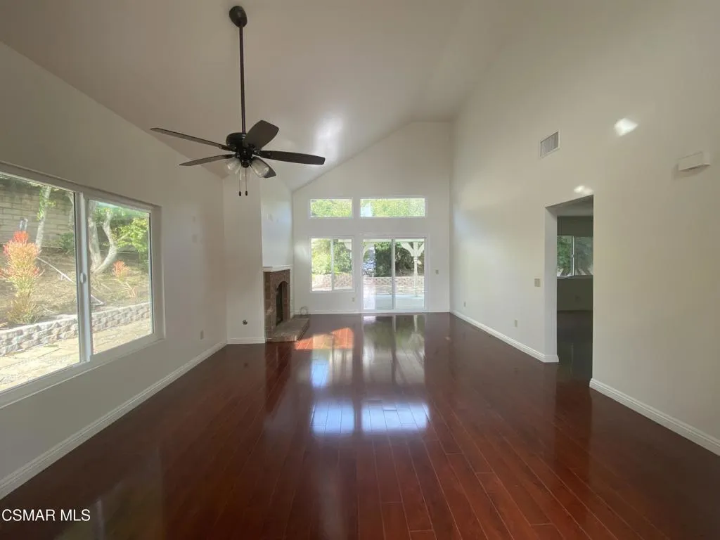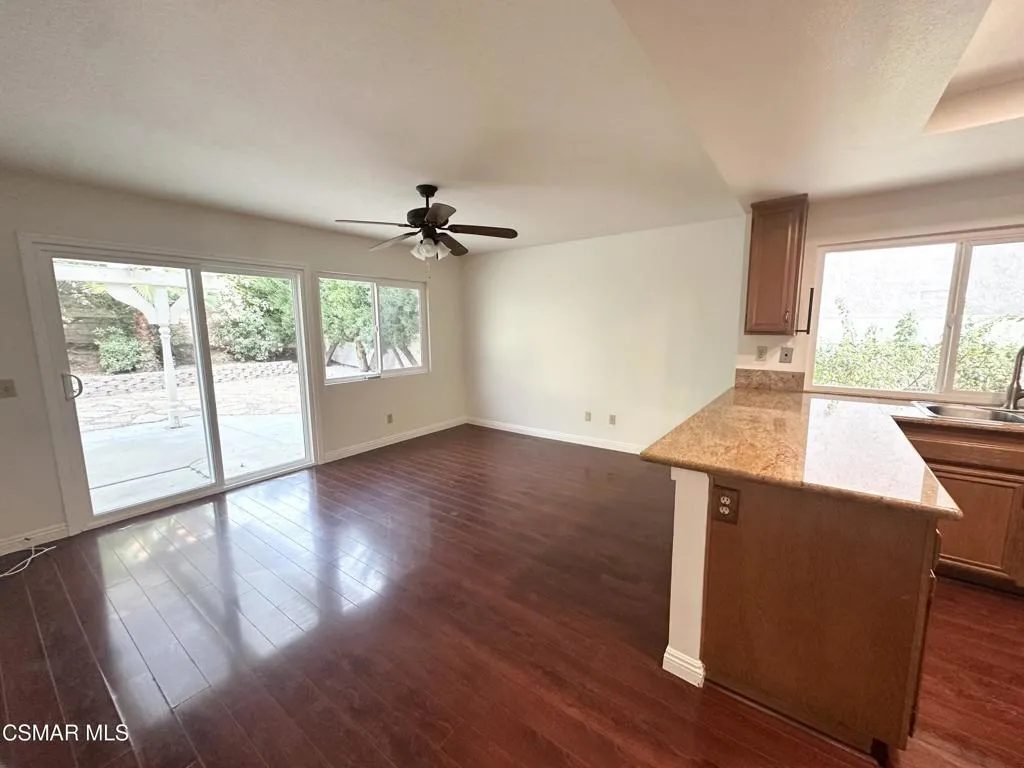 Welcome home to this charming and serene single-family residence in the highly sought-after Oak Park community. Nestled within the desirable Country Glen development, this light-filled and beautifully maintained 3-bedroom, 2.5-bath home offers approximately 1,628 square feet of living space on an expansive ~6,000 square foot lot, ideally situated on a picturesque cul-de-sac.Step inside to discover an inviting open floor plan with soaring ceilings, abundant natural light from newer windows, and a cozy brick fireplace that anchors the main living space. Laminate wood flooring enhances the downstairs living areas, creating a warm and cohesive feel. The updated kitchen features granite countertops, a breakfast bar, and a stainless-steel stove/oven--perfect for everyday living and entertaining alike. Both the living room and family room offer sliding glass doors that open to an oversized patio, seamlessly blending indoor and outdoor living.Upstairs, the bedrooms enjoy lovely mountain views. The spacious primary suite includes a walk-in closet with custom organizers and an en-suite bath with dual sinks. Two additional bedrooms share a well-appointed full hallway bathroom.Boasting excellent curb appeal, the home's front and back yards are professionally landscaped with new fencing, drought-tolerant plants, and decorative river rock accents. Additional highlights include a two-car garage with a newer water heater.Conveniently located near award-winning schools, parks, shopping, dining, and more, this exceptional home offers comfort, style, and an unbeatable location.
