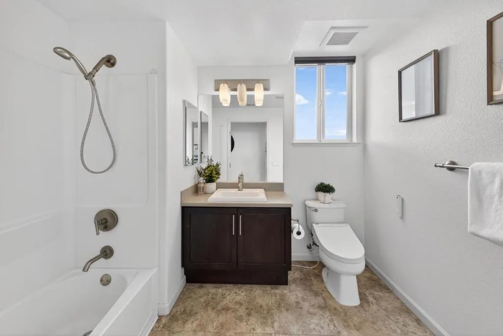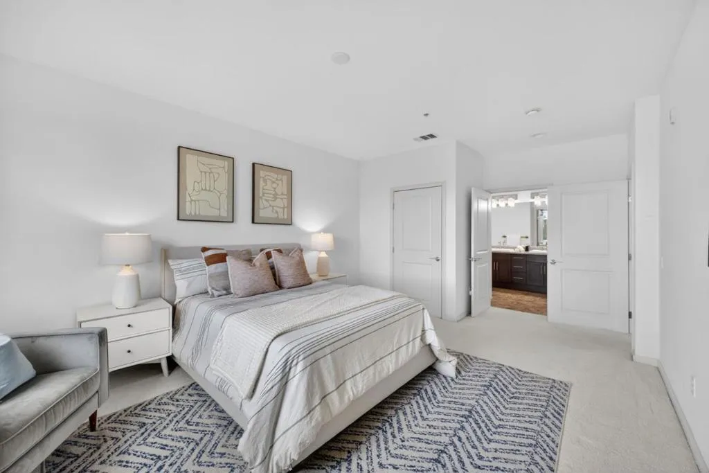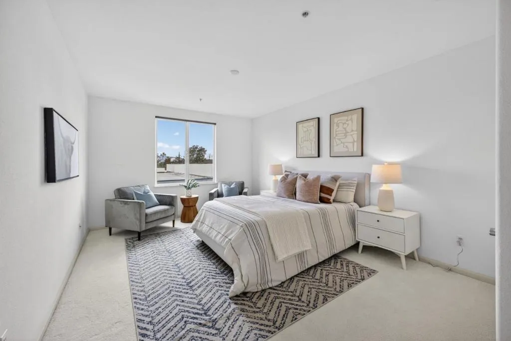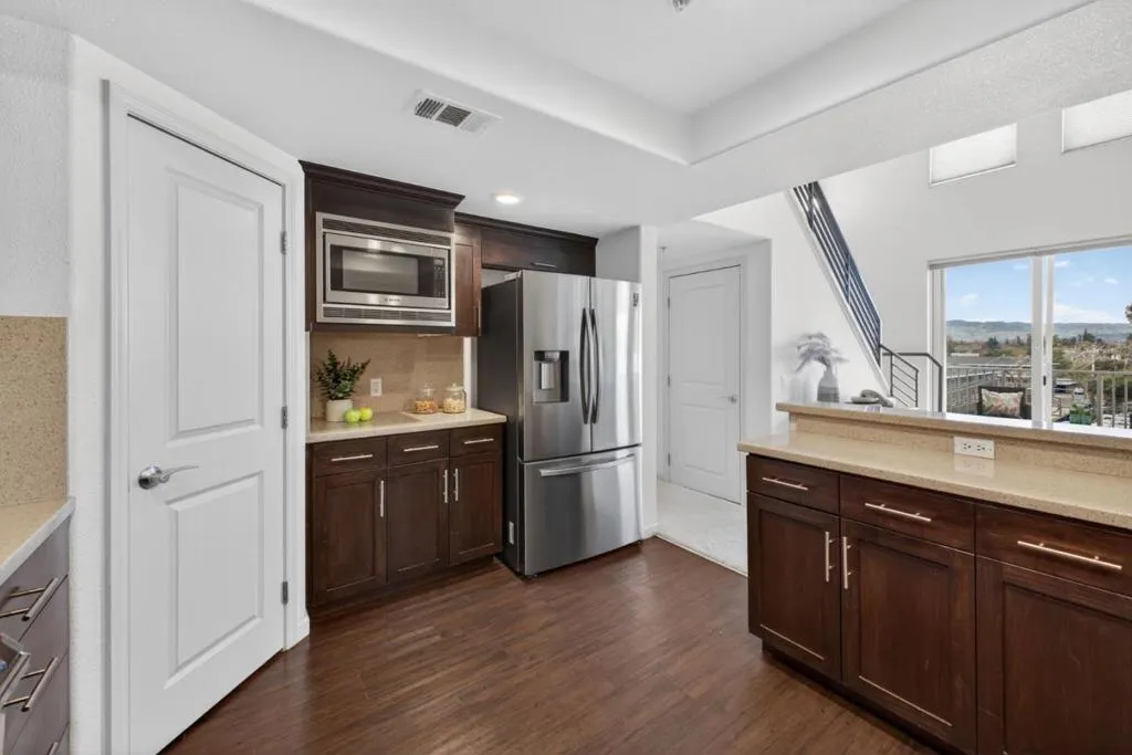 Welcome to 912 Campisi Way, Unit 417, located in the ONYX building, steps away from the Pruneyard in Campbell a beautifully designed end-unit Penthouse with a versatile loft offering 1,807 square feet of light-filled living in a secure gated community. Built in 2008, unit 417 is one of the best locations, combining privacy with panoramic views of the Pruneyard and surrounding hills. Soaring 17 ft ceilings and expansive windows fill the space with natural light, while the electric fireplace anchors the inviting family room with direct access to a private balcony for seamless indoor-outdoor living. The open layout flows into a thoughtfully designed kitchen featuring granite countertops, espresso cabinetry, a walk-in pantry, and stainless steel appliances. The primary suite offers tall ceilings, hill views, a custom walk-in closet, and a spa-like bath with soaking tub, glass shower, double vanity, and bidet. Two additional bedrooms and a flexible loft provide excellent versatility. Additional highlights include central HVAC, LG washer/dryer, elevator access, two parking spaces, storage, and resort-style community amenities, including a full Gym, and billiard/rec room, all just minutes from the Pruneyard, Downtown Campbell, and Los Gatos Creek Trail. This complex allows EV Charging!