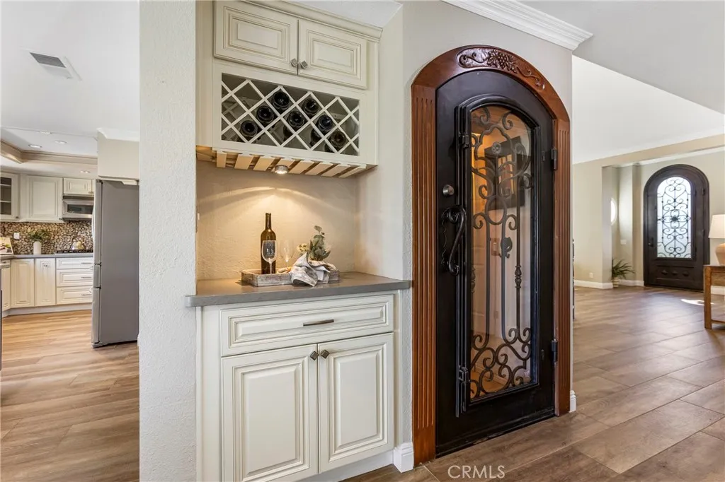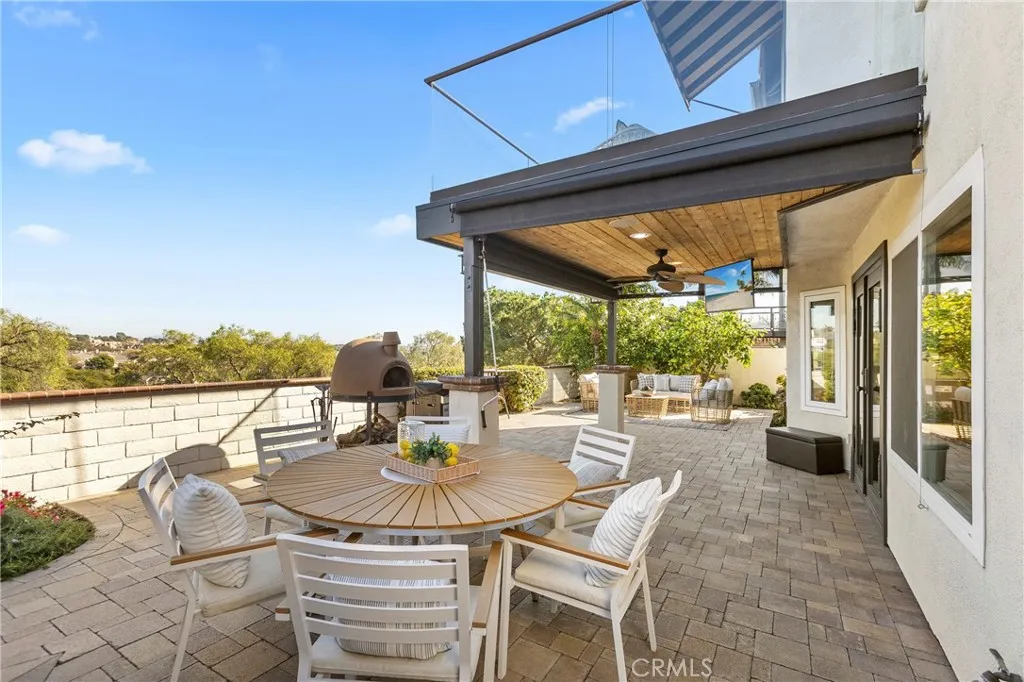 Welcome to this beautifully updated four bedroom, three bath home that blends modern upgrades with timeless comfort. Thoughtfully designed for today’s lifestyle, the versatile floor plan features a highly desirable downstairs bedroom and full bath, ideal for guests, multigenerational living, or a private home office. The former step down living room has been filled in to create a seamless and current layout with an open feel throughout the main level. Elegant wood look tile flooring spans the entire downstairs, offering both style and durability. Natural light fills the home and highlights the expanded kitchen, which has been tastefully upgraded with quality finishes, generous counter space, and a large island with seating that is perfect for casual dining and entertaining. Upstairs, you will find spacious secondary bedrooms and a primary suite with an enhanced and enlarged balcony with sweeping views and upgraded awning. The beautiful staircase with iron railing creates a stunning focal point and adds a touch of sophistication to the interior. Step outside and enjoy views of the surrounding hills and scenery. The expanded backyard offers ample space for gatherings, play, or quiet relaxation and the large balcony above provides some nice shade. A private wine cellar adds charm and character for those who love to entertain. The enclosed front yard is a welcoming retreat with lush landscaping and a putting green that provides both beauty and fun. This exceptional property offers comfort, thoughtful upgrades, and picturesque views in a setting that truly feels like home. The association offers a community pool and spa with outdoor showers, a full tennis/sport court, and a park area. The home is within walking distance to the California Distinguished School John Malcom, and only 1.5 miles from Salt Creek Beach, with convenient walking trails for hiking or biking directly to the shore. Enjoy easy access to Monarch Beach Golf Links and two world-class five-star resorts, the Waldorf Astoria and The Ritz Carlton. The nearby Dana Point Harbor going through a major renovation is also a short drive or ebike away.