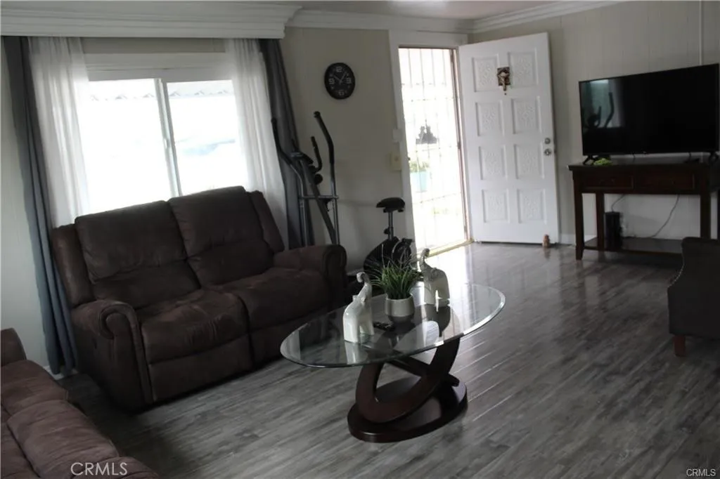Nicest mobile home I've ever seen! This mobile home features 2 bedrooms 2 baths, newer kitchen cabinets with granite counters, stainless steel stove and sink, wood laminate flooring in the living room, bedrooms and hallway, crown molding throughout, updated bathrooms with tile flooring, newer double pane windows, new AC & heater system, 3 parking spaces, covered patio with 2 seating areas, outside laundry hookup area, interior and exterior paint is well maintained. Community features pool and spa, event center, workout room, car wash area and laundry area. This property has easy access to local stores, restaurants the 10 or 210 freeways and local schools are all close by.