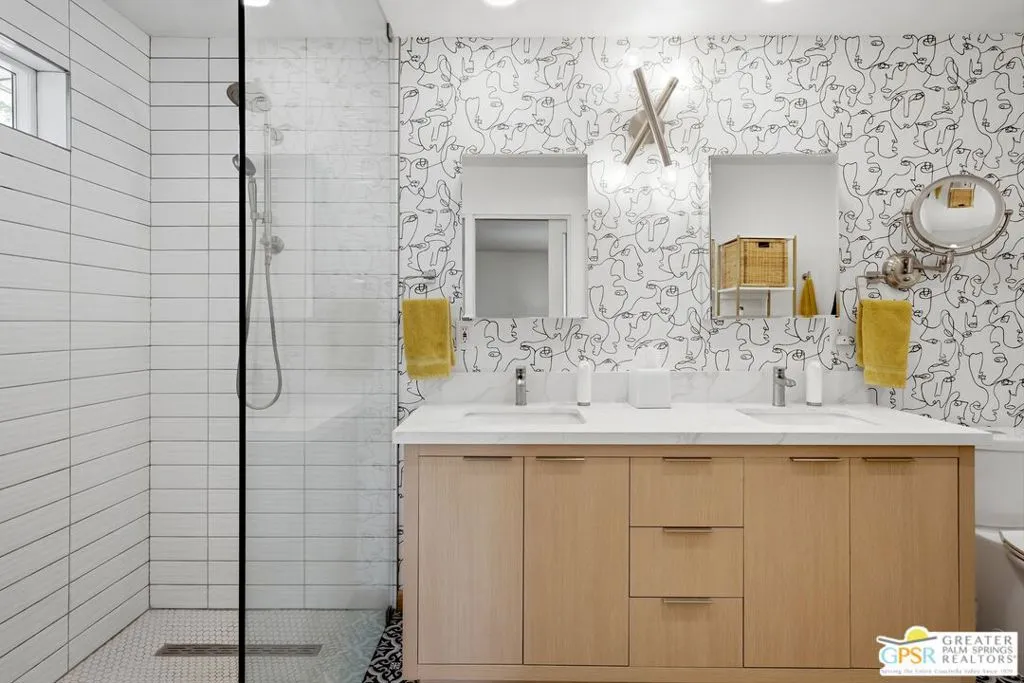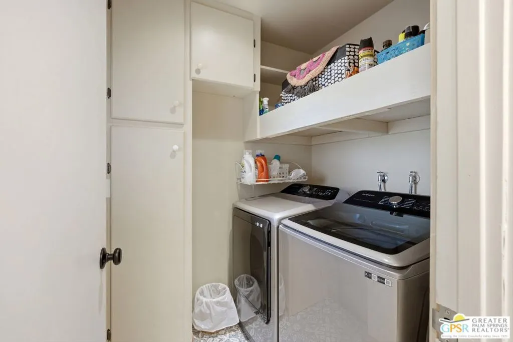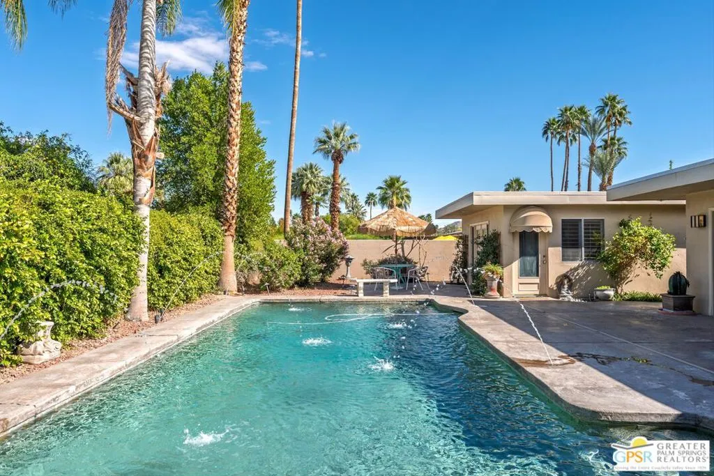 Luxury Live Auction! Bidding to start from $800,000! Buyers do not need to wait for auction date to submit and offer to stop auction. Loan or Cash. Welcome to 74860 Fairway Dr. Experience the pinnacle of desert living in this iconic South Palm Desert Mid-century modern masterpiece. You will arrive at your front door by way of your circular driveway, ideal for greeting your guests. Offering 2,357 square feet of sophisticated interior space, including many upgrades, this beautifully updated home features 3 bedrooms, 3 bathrooms, and a versatile floor plan that includes a private-entry casita ideal for guests or a home office. Architectural elegance defines the residence, showcasing travertine and wood style flooring, custom built-ins, sleek European cabinetry, slab granite countertops, and premium appliances. The primary suite offers a spa-inspired bath complete with a jacuzzi tub overlooking a serene private atrium. Step outside to an expansive entertainer's backyard featuring stamped concrete, a saltwater Pebble Tec pool, a built-in BBQ station, covered patio and breathtaking south and west-facing mountain views perfect for enjoying the desert's iconic sunsets. Meticulously updated for comfort, efficiency, and peace of mind, this home includes OWNED solar, a brand-new roof (November 2025), new HVAC system, tankless water heater, Ring doorbell, and numerous additional upgrades. The garage includes a dedicated golf cart area with convenient charging access. Ideally located near the renowned El Paseo Shopping District, The Living Desert Zoo and Gardens, and world-class golf courses with NO HOA. This exceptional property seamlessly blends iconic 1964 charm with today's most sought-after modern amenities. Permitted Casita is additional 442 S.F., main house is 1,915 S.F. (assessor), total 2,357 S.F. not shown on title profile.