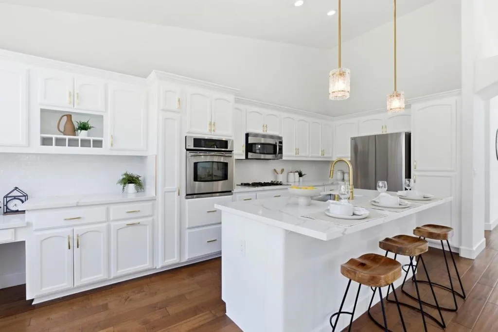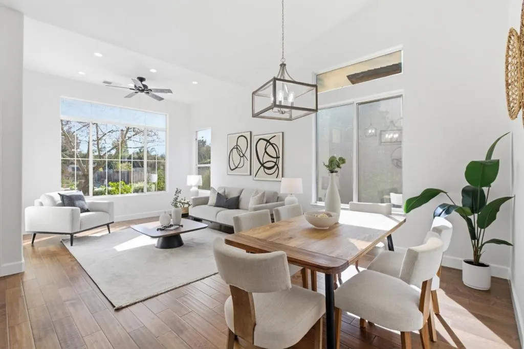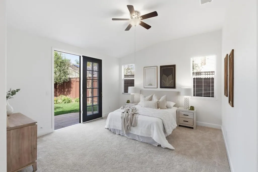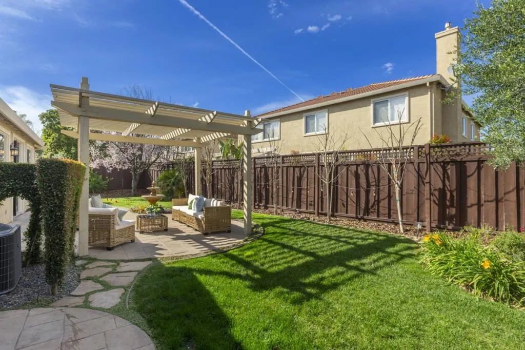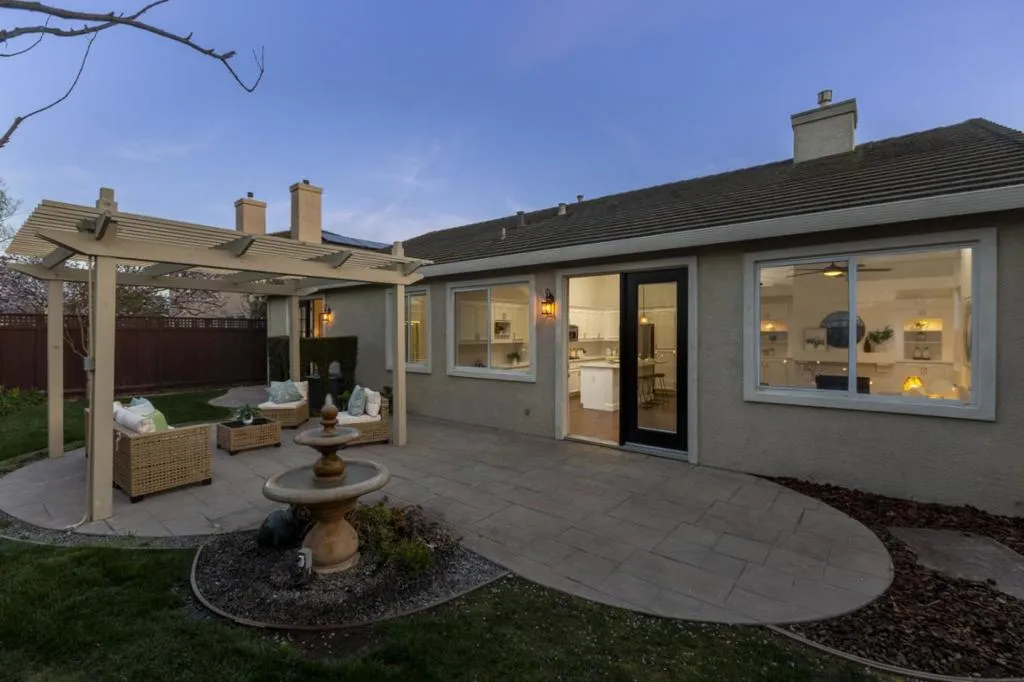The thoughtfully designed floor plan features a seamless kitchen and family room combination, ideal for everyday living and entertaining. The kitchen includes a gas cooktop, quartz countertops, a built-in oven, and a spacious island with a sink and breakfast bar. A cozy fireplace anchors the living space, while central AC and ceiling fans provide year-round comfort. Vaulted ceilings and a blend of hardwood, tile, and carpet enhance the home's warmth and style. The private primary suite offers a walk-in closet, dual sinks, and an oversized soaking tub. Situated on a generous 7,081 sq ft lot, the backyard comes alive in summer and fall with vibrant pollinating flowers that attract hummingbirds. Mature fruit trees include lime, Meyer lemon, orange, tangerine, olive, and pineapple guava. The subdivision backs to scenic farm fields and the El Toro foothills, with limited through traffic creating a quiet, walkable neighborhood. Adjacent to the Centennial Recreation Center and Community Park, enjoy aquatics, fitness, tennis, athletic fields, and a dog park just moments away. Shopping, dining, downtown Morgan Hill, and everyday essentials are all nearby. A three-car garage and a location within the Morgan Hill Unified School District complete this exceptional offering.
