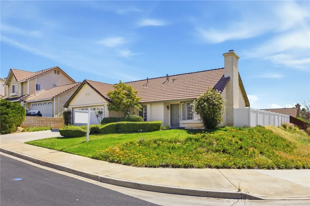 Welcome to a charming single-story home located within the highly sought-after Sunnymead Ranch community. Featuring three bedrooms and two bathrooms, this home sits on a desirable corner lot and offers a functional layout with great potential. Built in 1988 and set on a 7,841 sq ft lot, it combines comfort, space, and opportunity. The inviting curb appeal includes a well-maintained lawn, trimmed bushes, and white vinyl side fencing. A spacious driveway and two-car garage provide everyday convenience. Inside, the bright living room features multiple front-facing windows, laminate wood-style flooring, and a classic brick fireplace. The space flows into the dining area and kitchen, where sliding glass doors and additional windows bring in natural light. The kitchen offers natural wood cabinetry, white tile countertops, and a functional layout, ready for your personal updates. All bedrooms are carpeted and comfortably sized, while the bathrooms feature matching cabinetry and clean white countertops. The backyard offers plenty of space to create your ideal outdoor setting, whether for entertaining, relaxing, or future enhancements. As part of Sunnymead Ranch, residents enjoy access to a private lake, pool, spa, clubhouse, fitness center, and walking trails. Conveniently located near shopping, dining, parks, and schools, this home is a great opportunity to own in one of Moreno Valley’s most established communities.