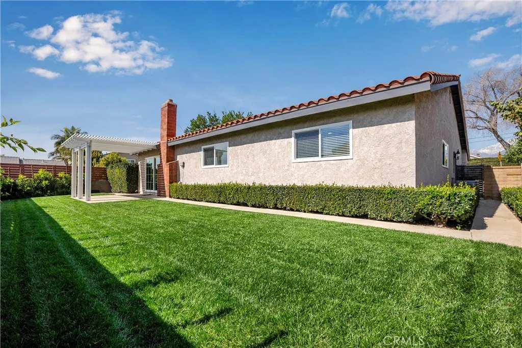 Beautiful Single-Level 4 Bedroom, 2 Bath Corner Lot Home North of Foothill in a desirable Upland neighborhood! This well-designed pride of ownership home offers a functional split-wing layout and generous living spaces throughout. The oversized Primary Suite is privately situated on the north wing and features an ensuite bathroom and three closets, including a walk-in closet. On the south wing, you’ll find three spacious secondary bedrooms, each offering ample closet space, along with a centrally located full bathroom convenient to the bedrooms and main living areas. Step inside to tall vaulted ceilings and an inviting, bright and open formal living room at the entry. The home also features a separate family room off the kitchen with a beautiful stacked stone fireplace, ideal for everyday living and entertaining. The kitchen showcases quartz countertops, stainless steel appliances, and abundant cabinetry, and bartop opening into the main living space. The backyard offers a private and inviting outdoor setting with a spacious covered patio. The meticulously manicured yard features mature hedging along the perimeter for added privacy. The pergola-style patio cover creates a comfortable shaded area ideal for outdoor dining, and the extended side yard walkway provides additional functionality and access. Additional highlights include: open-concept living areas, indoor laundry room, dual pane windows, recessed lighting and updated light fixtures, central A/C, elegant laminate flooring throughout the main areas, attached 2-car garage, extended driveway with parking for multiple vehicles, and a desirable corner lot location. Conveniently located north of Foothill near shopping, dining, and everyday amenities, this home offers comfort, space, and a highly functional floor plan.