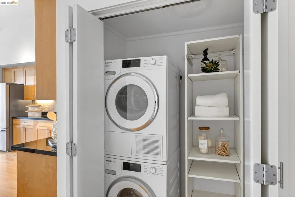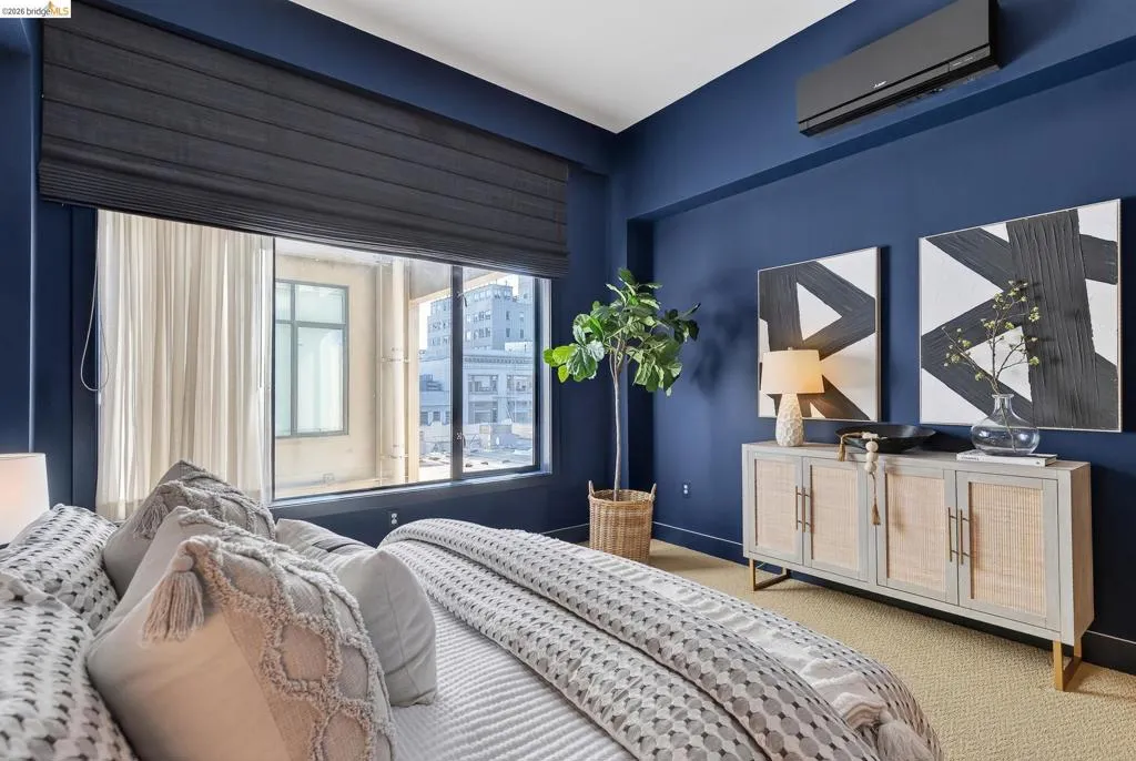 In the 1920s, as the neon of the Fox Theater and Paramount Theatre lit up Uptown’s skyline, 1755 Broadway stood at the center of Oakland’s most electric nights. Today, that same address offers a refined, design-forward 2 bedroom, 2 bathroom residence in the very heart of the city. Unit 45 blends historic character with modern sophistication, featuring soaring ceilings, dramatic commercial height windows, motorized shades, and a sleek gourmet kitchen with stainless steel appliances and granite countertops. The newly-renovated primary suite showcases a spa-inspired glass enclosed shower, while the spacious second bath includes a deep soaking tub. Newly installed AC and heat split systems provide year-round comfort. Secure garage parking, elevator access, and professional management enhance everyday ease. With 19th Street BART just three minutes away, San Francisco, Berkeley, and beyond are within effortless reach. For the buyer who wants style, energy, and seamless access to dining, nightlife, culture, and transit, 1755 Broadway places you directly in the pulse of Uptown Oakland. HOA includes Google Fiber internet, water, garbage, designated under-ground parking space, common area maintenance. Building has been retrofitted.