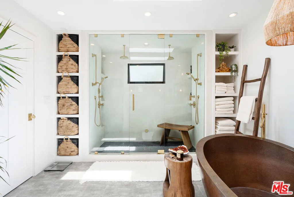 This is THE perfect Malibu beach house! Nestled in a desirable, quiet and convenient section of Point Dume Club, rests this private sanctuary. This spacious home has 3 bedrooms and stunning high vaulted ceilings and beams. This Malibu home is full of quality new improvements, including gorgeous oak hardwood floors, elegant wood doors and top of the line, double pane Marvin windows throughout, for that flowing beach breeze and light. The primary suite is bright and spacious with beautiful double barn doors leading to a walk in closet. One of my favorite aspects of the house is its luxurious, resort like primary spa bathroom (which you must see). A heat retaining 6ft copper tub and a fully enclosed dual steam shower with rain and wall shower heads, make this the perfect getaway. There is also a mudroom/bonus room entrance from the carport and a substantial shed for storage or to keep your surfboards. The large, very private backyard has a new gorgeous ipe fence as a backdrop for making all of your zen dreams come true. The HOA amenities seem endless and include 24 hr guard gate, swimming pool, spa, sauna, tennis courts, club house, basketball court, pickleball courts, trash and septic, space rental and back gate down to Westward/Zuma Beach. And to top it off this home has remarkable mountain and straight on sunset views with a peek-a boo view of the Pacific! This is a special one folks, don't miss it!