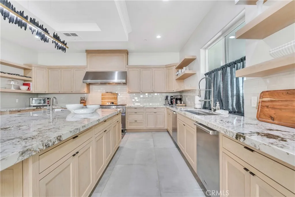 A truly one-of-a-kind turnkey home, fully custom estate in a prestigious gated community. This 4,600 sq ft modern residence blends architectural sophistication with intentional design, featuring soaring vaulted ceilings and natural quartzite finishes throughout. The home offers 4 bedrooms, 4.5 baths, and a dedicated office, crafted with precision for elevated living. The chef's kitchen is outfitted with brand-new Wolf and Sub-Zero appliances, including a wine refrigerator, ideal for entertaining. Multi-zoned HVAC ensures year-round comfort, while a full exterior monitoring system with 22 cameras, dedicated routers, and a private server provides exceptional security. Designed for both relaxation and statement, the home includes a sunroom, a covered balcony off the primary suite, and two Romeo & Juliet balconies. Outdoors, mature imported olive treesover 80 years oldcreate a timeless setting. Additional highlights include a striking 1,000-gallon aquarium feature and a 1,200 sq ft garage with generous storage.