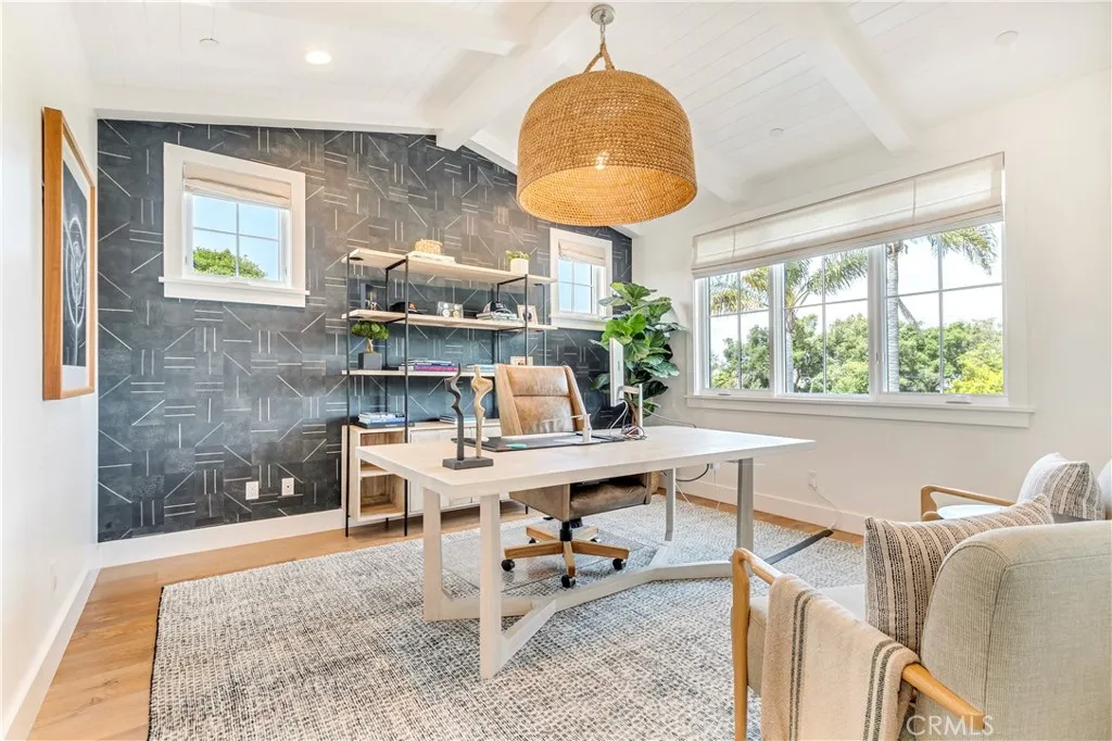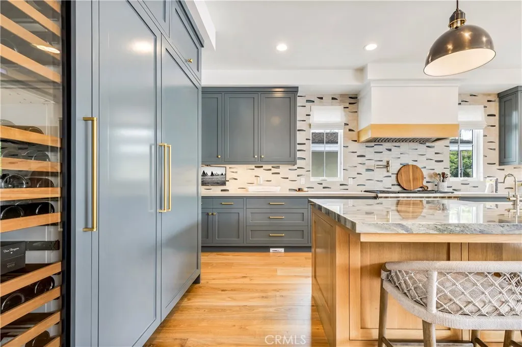 Another Graystone Custom Builders masterpiece, designed by House of Morrisson, where very detail is crafted to elevate luxury living. The fixtures, finishes and architectural elements were meticulously selected and flawlessly executed. With a powerful presence, the opulent 5-bedroom, fully furnished, residence showcases timeless hardwood flooring, high ceilings, masonry accents, and unique touches throughout the open concept and generous spaces. The immense kitchen of exceptional scale provides lavish cabinetry and drawers, exclusive Calcutta counters, breakfast nook enclosed by walls of windows, 54-inch Thermador fridge, Miele coffee station, 6 burner range with griddle and dual oven, wine tower fridge, and extravagant island with seating, and country style sink - overlooking the family room replete with slate fireplace and sprawling, hidden bifold doors unveiling and maximizing the indoor-outdoor living loggia. Tucked away adjacent to the walk-in pantry, lies the butler’s kitchen with storage, additional prepping station and convenient passage to the formal dining room. The dining room supplies walls of integral built-ins and bifold doors for a seamless indoor/outdoor entertaining opportunity to the front yard. A luxurious primary retreat presents soaring beamed ceilings, white masonry accents, stone fireplace, two finished walk-in closets, an independent makeup vanity, and a luxe primary bathroom with two separate vanities, walk-in shower, independent soaking tub and isolated lavatory room. The lower level supplies a fabulous lounge with full-service bar, and Accordion doors leading to the lush backyard boasting a pool with sun shelf, sparkling spa, built-in barbecue and outdoor entertaining deck. Other exemplary features include a mud room off the three-car garage, and a laundry room designed to contain 2 washers and 2 dryers among ample storage and counter space for convenient laundering needs. Live the Newport Heights lifestyle in the prestigious enclave of Cliffhaven with proximity to all Newport’s finest beaches, dining, and attractions.