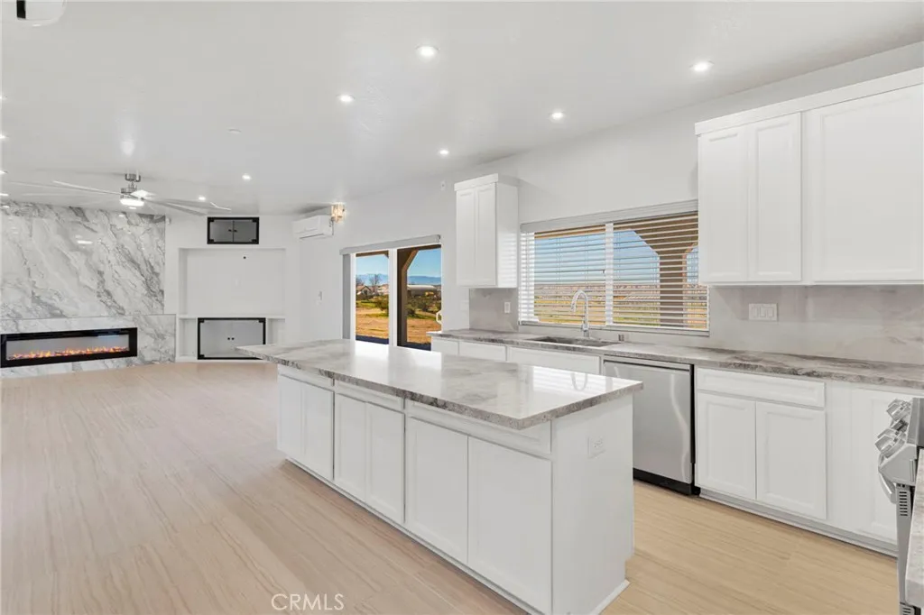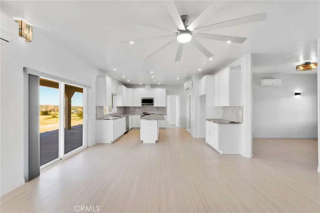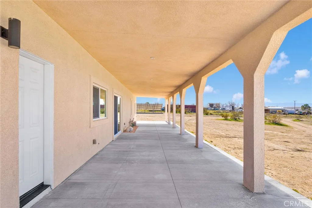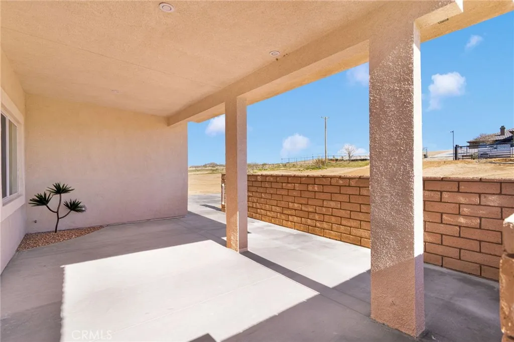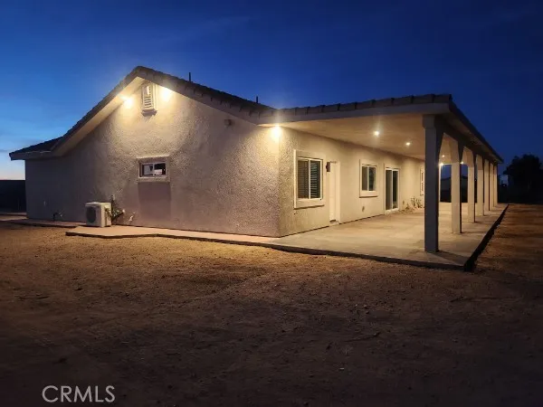 The New Construction features 5 bedrooms and 3 bathrooms, including 2 primary suites. The property is fully fenced and is serviced by its own private well with no water meters or usage fees beyond power to pump. Approximately 40 mesquite trees are planted with automatic irrigation. Built with efficiency in mind; all-electric appliances with expandable fully paid for solar systems, Tesla Powerwall 3 batteries, that include power outage protection. The system is designed for potential off-grid living while remaining connected to Edison. Front patio and full length back patio provide ample space to relax and watch the desert sunsets. Interior finishes include fully insulated interior walls, porcelain tile flooring throughout, quartz countertops and window sills, solid-core custom doors, Kohler fixtures and fully insulated garages. Each room is equipped with a fire suppression system and room-by-room climate control via high-efficiency mini-splits. The kitchen is designed for both functionality and efficiency, featuring a spacious island, cabinetry with convenient slide-out shelving, and a high-performance induction range. A large glass-door pantry provides ample storage and adds to the kitchen's thoughtful, modern design. The Oro Grande School District serves the community with a focus on personalized learning and academic achievement across its elementary and middle schools including the highly desired Riverside Prep (Elementary, Middle and High Schools).