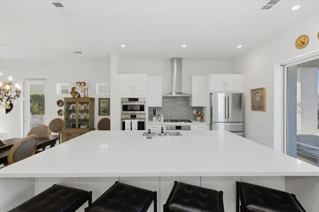 Tucked inside Iridium, a boutique gated enclave of just 27 New Century Modern residences in Rancho Mirage, this newer home channels the clean lines and easy elegance of classic desert design--reimagined for today's lifestyle. Inspired by the mid-century movement that shaped the Coachella Valley, this fully equipped mini estate delivers a polished blend of luxury, comfort, and effortless indoor-outdoor living.Inside, an open great-room layout is elevated by soaring 10-foot ceilings, recessed lighting, and expansive multi-slide doors that dissolve into two private outdoor patios--perfect for morning coffee, golden-hour cocktails, and everything in between. The resort-style backyard takes center stage with a Neptune-inspired saltwater pool and spa, outdoor shower, and fire pit, all framed by tranquil panoramic mountain views--including twilight skies with sightlines toward San Jacinto and Big Bear.Designed with privacy in mind, the home offers four bedrooms. The primary suite is a serene retreat with an oversized shower, accent-lit double vanity, and a generous walk-in closet. The gourmet kitchen flows seamlessly into the great room and wet bar, featuring top-tier stainless appliances and a quartz slab island--tailor-made for entertaining.Modern conveniences include a whole-home water purification + softener system, tankless water heater, smart lighting and home features, high-speed data wiring, and owned solar--a crisp, contemporary take on iconic desert living at its most refined.