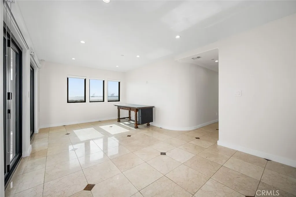 Stunning beachfront residence located directly on the sands of Long Beach, just steps from the water, with sweeping, unobstructed views from Catalina Island to Seal Beach visible from nearly every room. This rare offering is one of only a handful of homes situated directly on the sand near downtown Long Beach and has been extensively remodeled inside and out, with no expense spared. A striking tile and glass exterior welcomes you into a private, gated courtyard entry, leading to a dramatic formal entry that showcases a true modern masterpiece. The home features a nine-foot custom entry door, marble slab flooring, a stainless steel and glass staircase, and a private elevator servicing all three levels. Throughout the residence, you’ll find natural stone flooring, upgraded windows, central heating and air conditioning, recessed lighting, and ceiling fans in every room. The expansive primary suite is a true retreat, offering breathtaking ocean views, a luxurious ensuite bathroom, an oversized shower, separate soaking tub, and a room-sized wardrobe closet. Guest bedrooms are generously sized and also enjoy direct ocean views. The gourmet kitchen is designed for both function and entertaining, featuring dual refrigerators, a full appliance suite, and a large island with seating for four. A full-size laundry room includes side-by-side washer and dryer, ample storage, and generous counter space. Outdoor living is elevated with an exterior balcony and spiral staircase leading to a large rooftop deck, delivering unparalleled panoramic ocean views and unforgettable sunsets. This is a truly exceptional beachfront home rarely available on the sands of Long Beach.