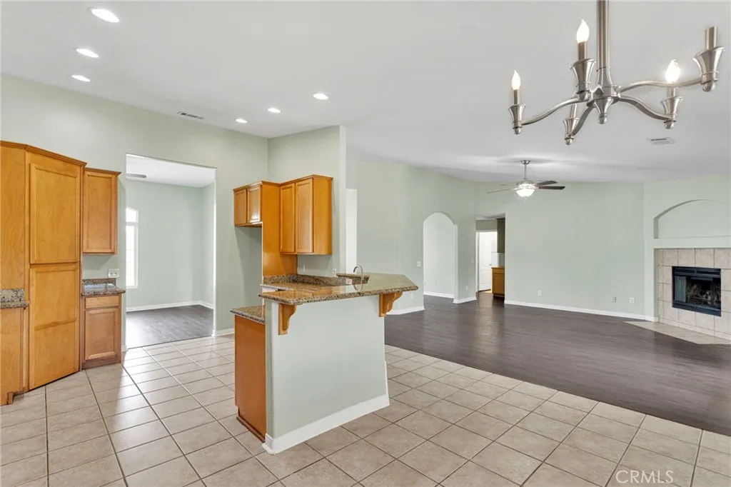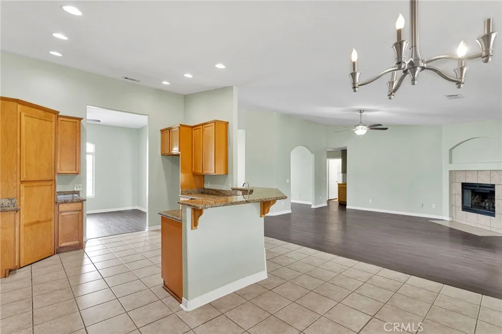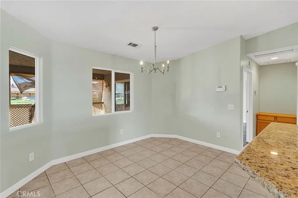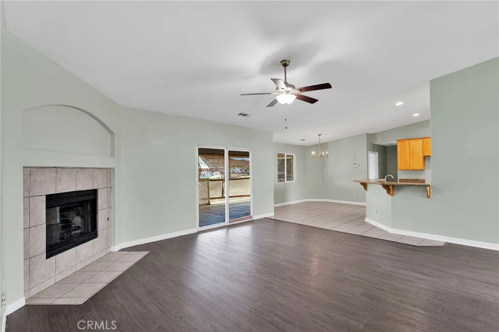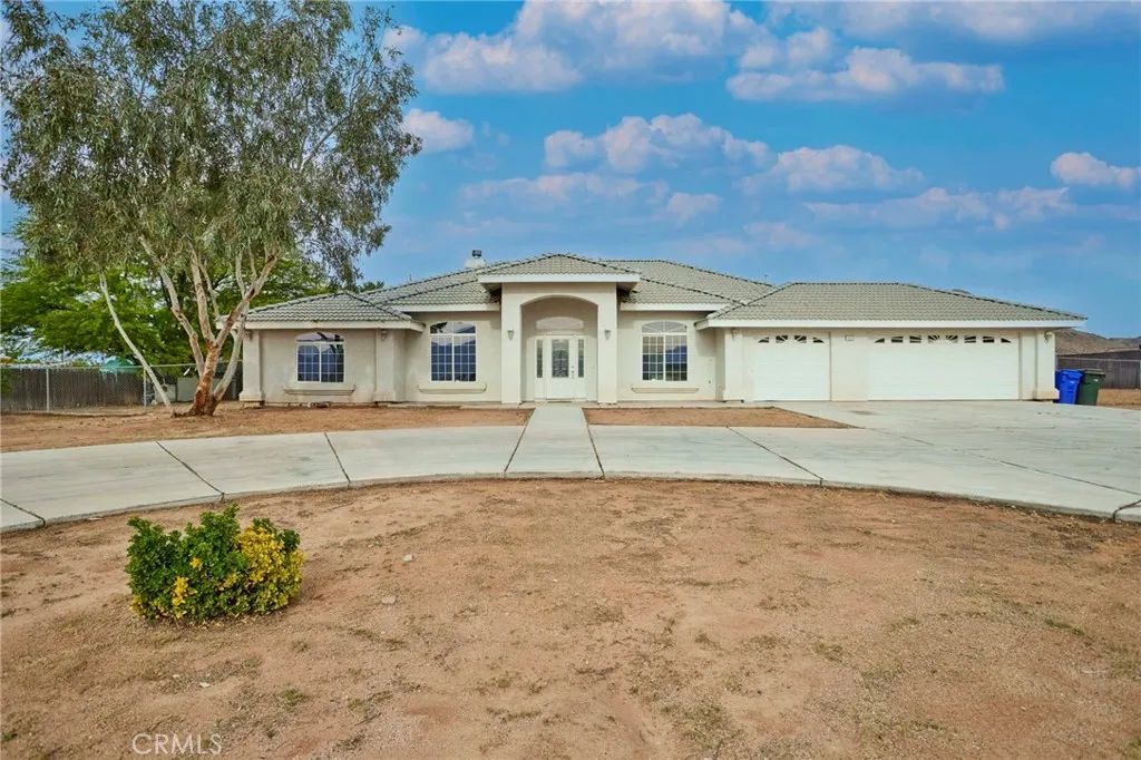 Beautiful 2,330 sq ft home located in the heart of Apple Valley, offering comfort, space, and scenic desert and mountain views. A circular driveway and covered front entry provide great curb appeal, complemented by a tile roof, deep three-car garage, RV access potential, and a covered backyard patio ideal for outdoor living. Inside, the home features a spacious foyer leading to formal and family living areas, including a large living room with fireplace. The kitchen offers granite countertops, recessed lighting, and a bright breakfast nook that opens to the main living space. The well-designed floor plan includes three spacious bedrooms, two full bathrooms, an indoor laundry room, and abundant natural light throughout.