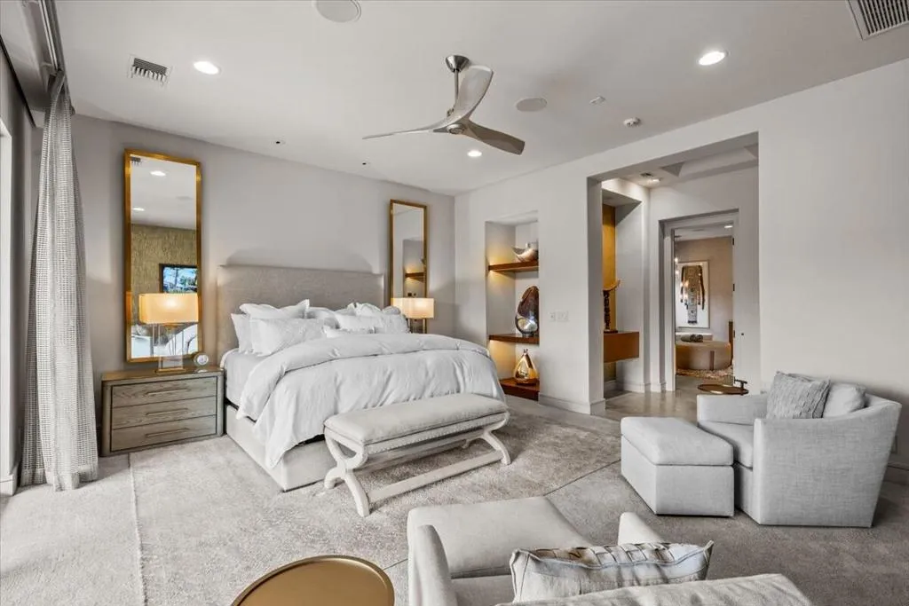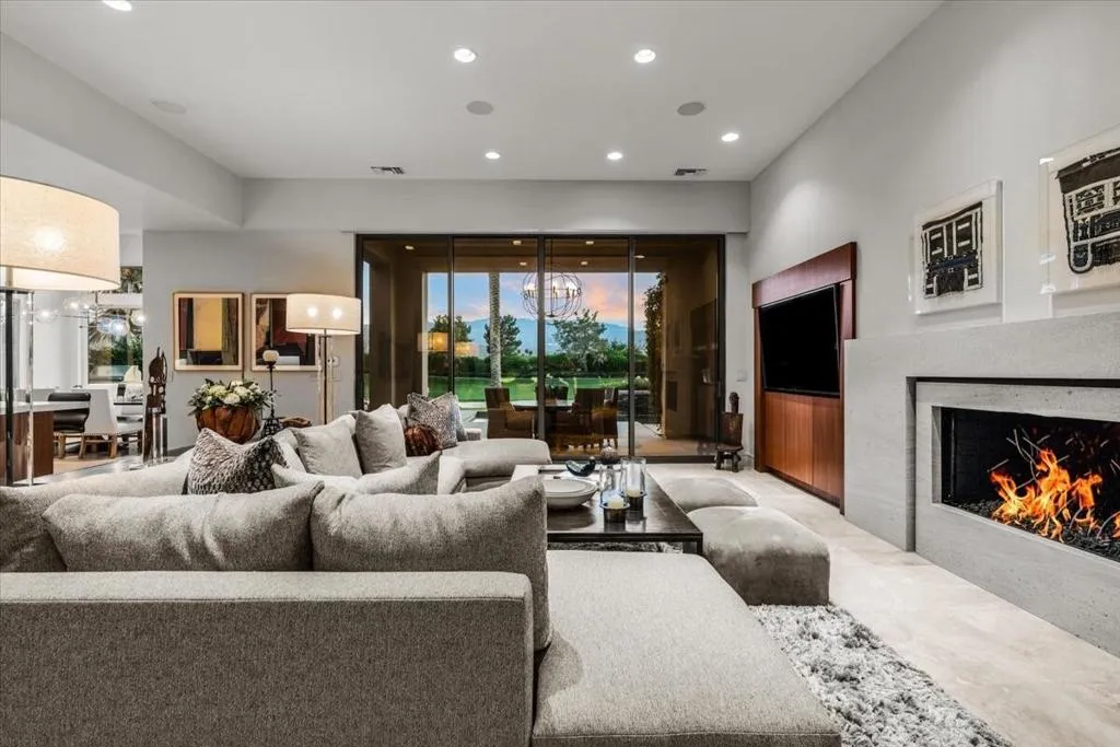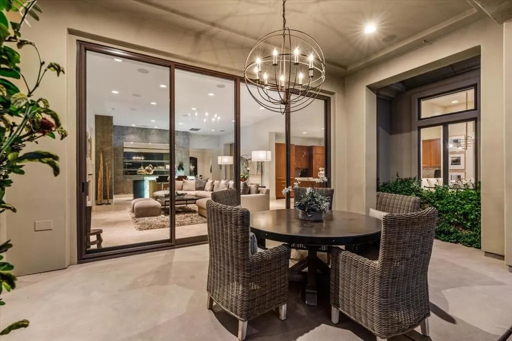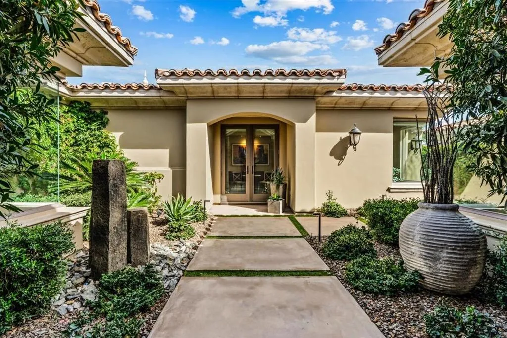 This exceptional 4,277-square-foot, south-facing Bellagio model with a detached casita was taken down to the studs and masterfully reimagined, representing Toscana living at its finest. Every detail has been curated to create a home that exudes desert luxury, sophistication, and effortless comfort. Offering four private en-suite bedrooms, including a beautifully appointed casita for guests, this residence blends contemporary elegance with warm, inviting tones. Romantic designer lighting sets the mood throughout, while honed limestone flooring, honed quartz countertops, refined faux wall treatments, and bespoke custom finishes elevate every space from floor to ceiling. The reconfigured and fully redesigned kitchen is a true showpiece -- thoughtfully opened and modernized with top-of-the-line appliances, composite quartz sink, and premium finishes that flow seamlessly into the home's gathering spaces. The heart of the home continues into the entertaining area, highlighted by a stunning illuminated onyx bar that creates an unforgettable focal point. Motorized shades provide convenience, and the heated primary bathroom floor adds spa-level comfort. Step outside to sweeping southern views across the fairway positioned to capture natural light without the glare of homes beyond. The expanded pool features a luxurious tanning shelf, while new hardscape pavers and a BBQ area with honed quartz-seated bar complete this true resort-style retreat. From baseboards to ceiling, no detail was overlooked in this comprehensive remodel. This is more than a home -- it's a statement of refined living in Toscana.