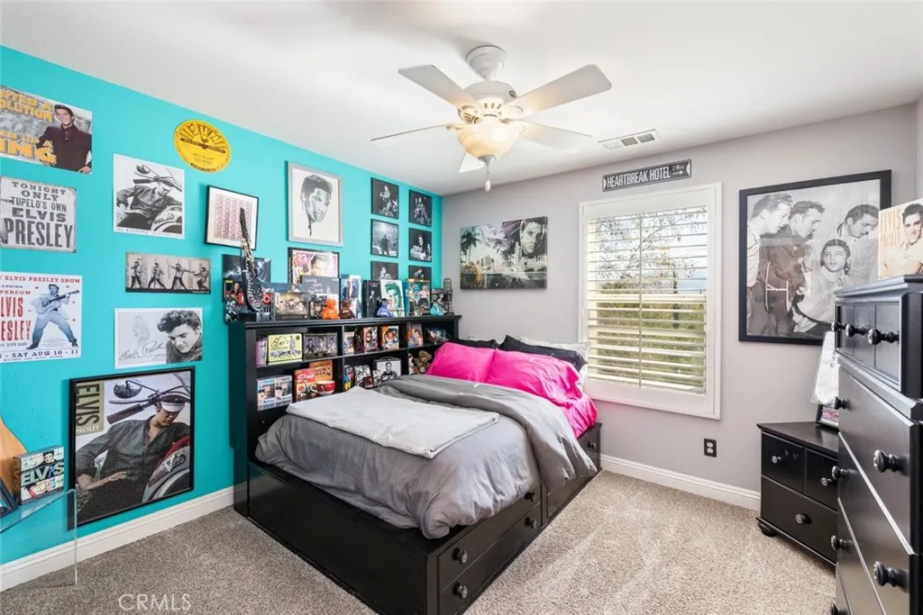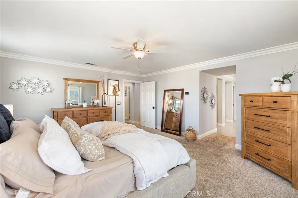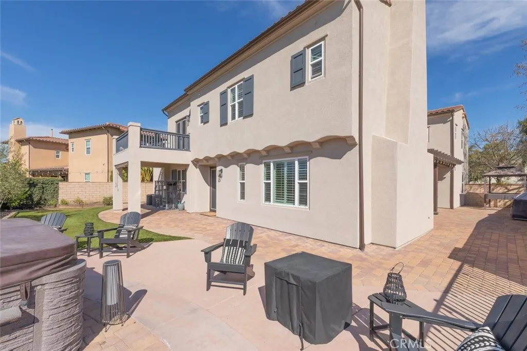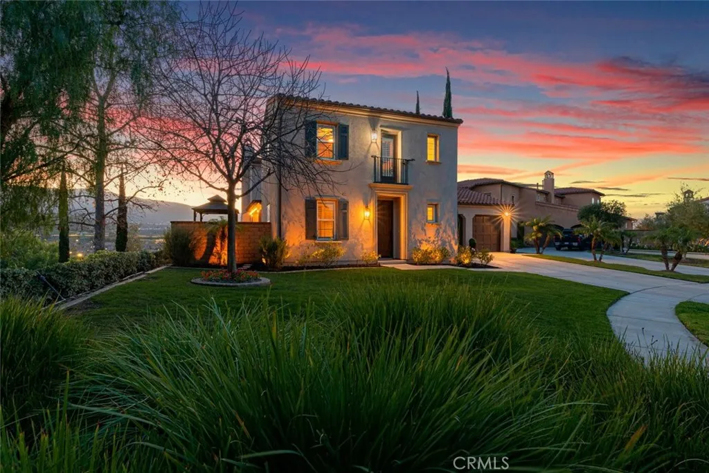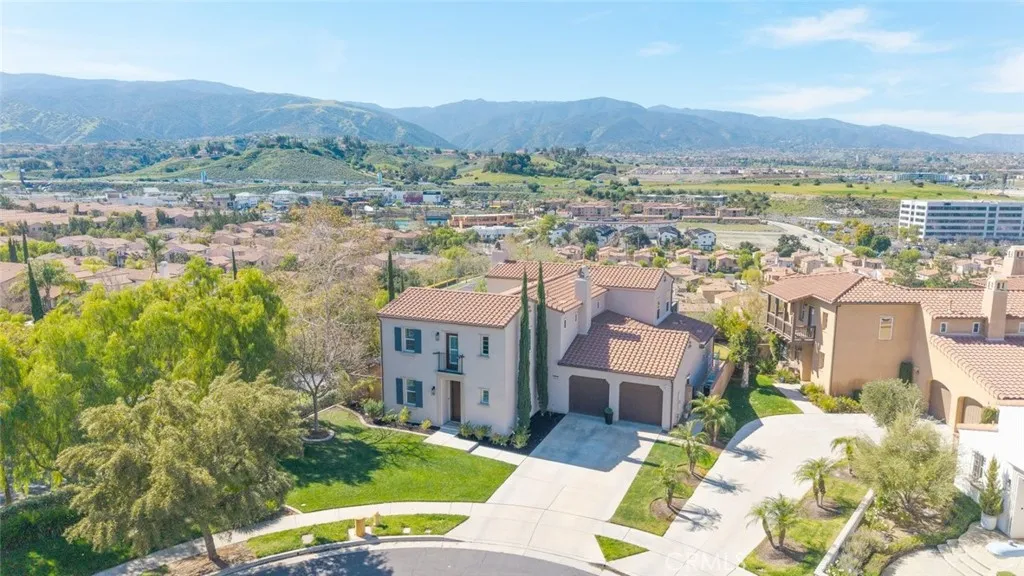 Welcome to Temescal Heights at Dos Lagos — one of Corona’s most desirable gated communities! Situated at the end of a quiet cul-de-sac, this magnificent residence offers stunning curb appeal with a spacious front yard, lush greenery, and an inviting presence that sets the tone for what awaits inside. Offering 4 bedrooms, 3 bathrooms plus a dedicated office (optional 5th bedroom), this home showcases a bright, open floor plan enhanced by beautiful travertine stone flooring. The formal living room features a cozy fireplace and flows seamlessly into the elegant formal dining room — perfect for gatherings and special occasions. The expansive family room also boasts a fireplace along with a built-in media niche for comfortable everyday living. The chef-inspired kitchen is beautifully appointed with rich dark cabinetry, gorgeous granite countertops, stainless steel appliances, a convenient butler’s pantry ideal for entertaining, and a spacious walk-in pantry for exceptional storage. An elegant wrought-iron staircase banister adds a dramatic architectural touch. Upstairs, the luxurious primary suite is truly fit for royalty, offering a spa-like bathroom complete with a soaking tub, walk-in shower, dual sinks, and a generous walk-in closet. Step out onto your private balcony and take in breathtaking panoramic views of rolling hills, mountains, and sparkling city lights — a spectacular backdrop both day and night. Additional interior features include ceiling fans, plantation shutters, and crown molding throughout. The backyard is designed for relaxation and entertaining, featuring a beautiful paver deck, alumawood patio cover with ceiling fans, maintenance-free turf, and a private hot tub where you can soak while enjoying the stunning scenery. Don’t miss this rare opportunity to own a view home in one of Corona’s most sought-after gated neighborhoods.