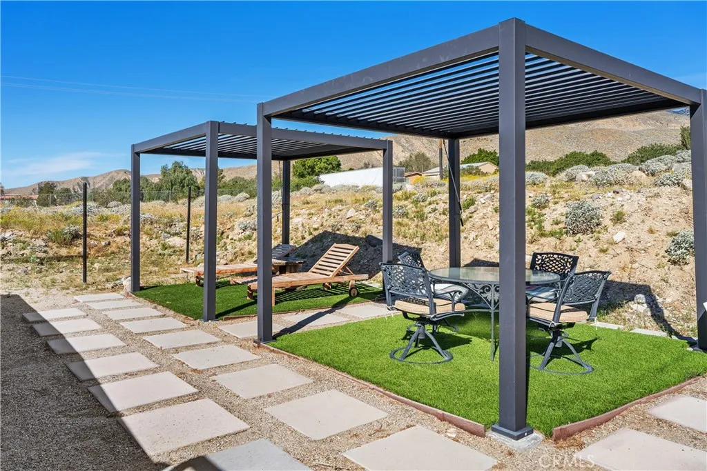 Discover a truly one-of-a kind desert retreat! Every room is designed with intention, creating a 2-bedroom 2-bath retreat that is artistic, serene and deeply welcoming. The home is energy-efficient featuring a passive cooling layout, upgraded windows, ceiling fans, attic fan and powerful HVAC system for year-round comfort. A detached bonus space offers flexible use as a guest suite, home office, art studio or pool house—ideal for hosting, work from home or creative living. Designed for true indoor-outdoor living, the expansive property invites long afternoons under double pergolas, relaxing in the saltwater pool or spa and evenings spent stargazing beside the outdoor fireplace. The one-acre lot offers space, privacy and tranquility with room to entertain or simply unwind in nature. Ideally located with easy access to the I-10 and Hwy 111, this one-of-a-kind Whitewater property offers a lifestyle that feels both connected and secluded. This is more than a home, it’s a restorative desert sanctuary for those seeking beauty, individuality, and soul.