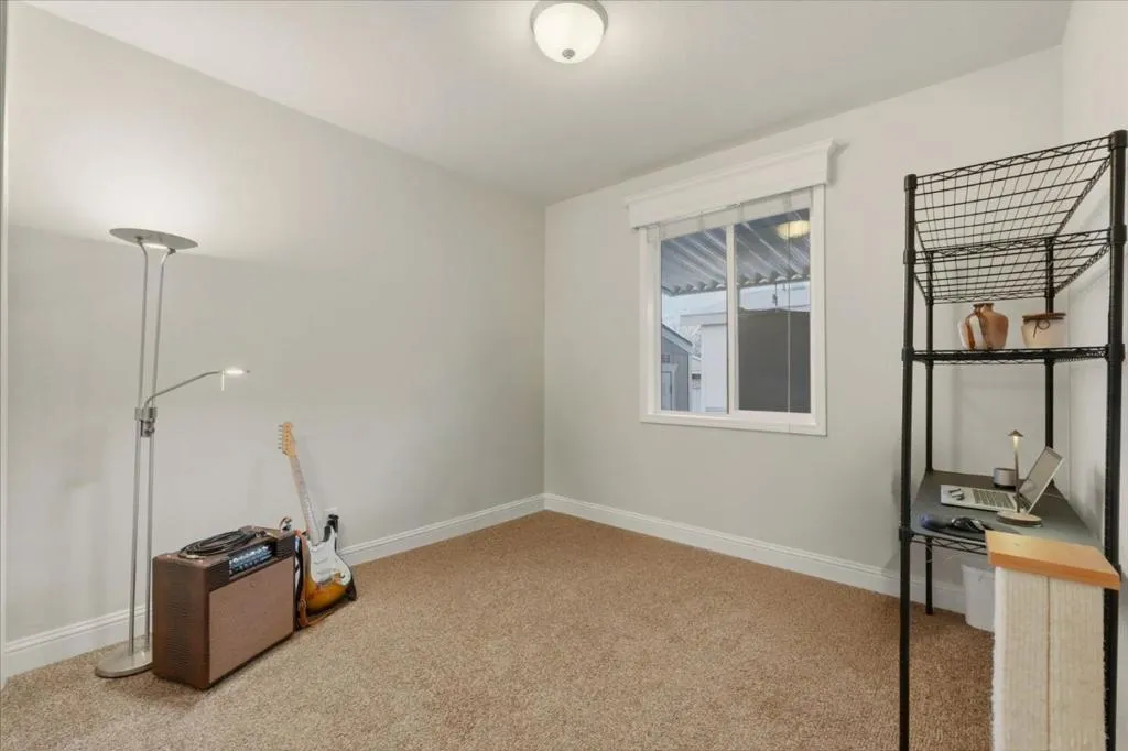 Affordable Luxury Living in San Jose! This elegant 3-bedroom, 2-bath modern manufactured home offers 1,512 SF of bright, open-concept living with soaring ceilings & abundant dual-pane windows that fill the home with natural light & wood shutters to enhance both the aesthetic & peaceful, quiet interior. The spacious living room features a cozy gas fireplace & flows seamlessly into the dining area & expansive chefs kitchen, complete with stainless steel appliances, contemporary cabinetry, generous storage, & beautiful granite counters. Stunning flooring throughout, paired with plush bedroom carpeting, + central A/C creates a move-in-ready vibe. Retreat to the resort-inspired primary suite & ensuite bath showcasing a soaking tub, separate shower, private water closet, & walk-in closet. Outside, enjoy exceptional privacy with shaded screening along the driveway & custom pavers, trellis accents, & lush landscaping in the side and rear patios, creating a serene, Zen-like outdoor escape. Ideally located in the highly desirable 55+ Town & Country Village community in San Jose, this home offers low space rent of $1133 & convenient access to shopping, dining, & recreation. An exceptional opportunity for those seeking comfort, style, and the chance to begin building equity in homeownership.