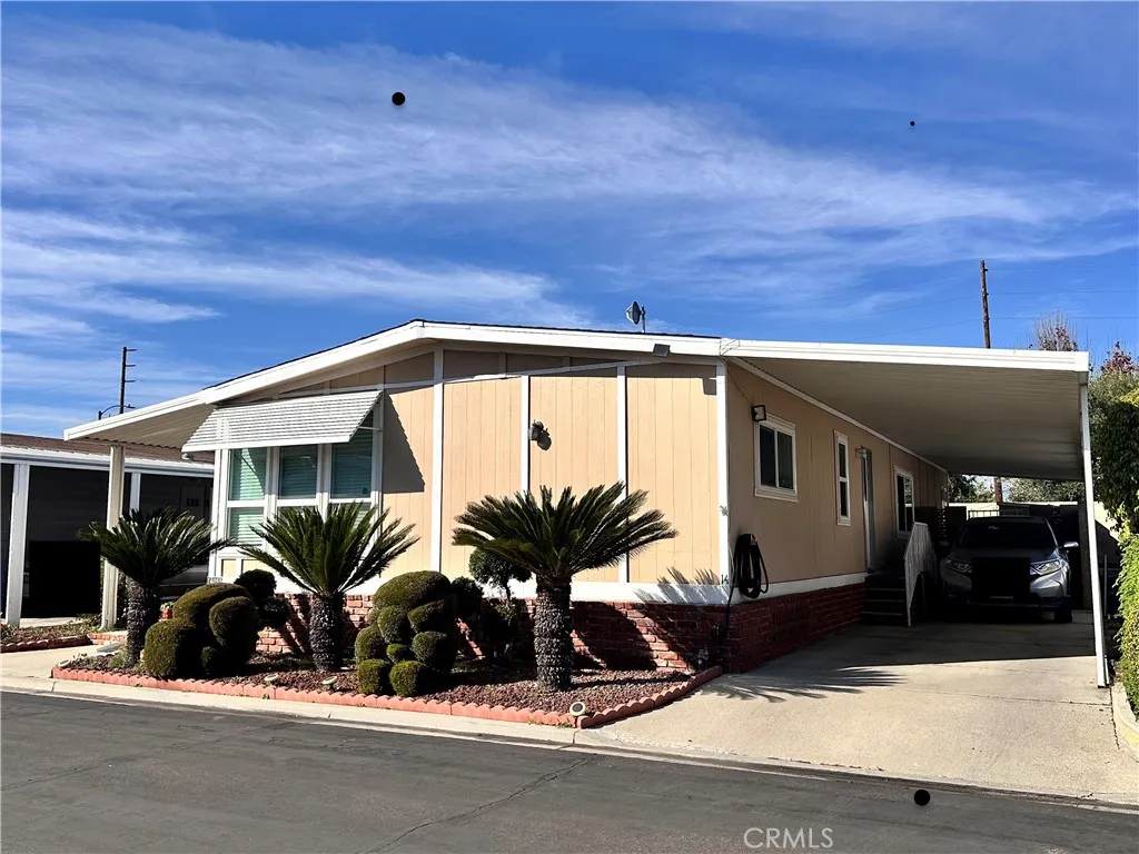 Situated within the Lake Park La Mirada 55+ senior community, this 2-bedroom, 2-bathroom home features an open floor plan and a private laundry room. Significant updates include a newer roof and dual-pane windows, along with fresh interior paint applied recently. All existing appliances are included in the sale. The property features a two-car tandem carport and offers convenient proximity to community amenities, including the lakefront clubhouse, pool, and walking paths.
