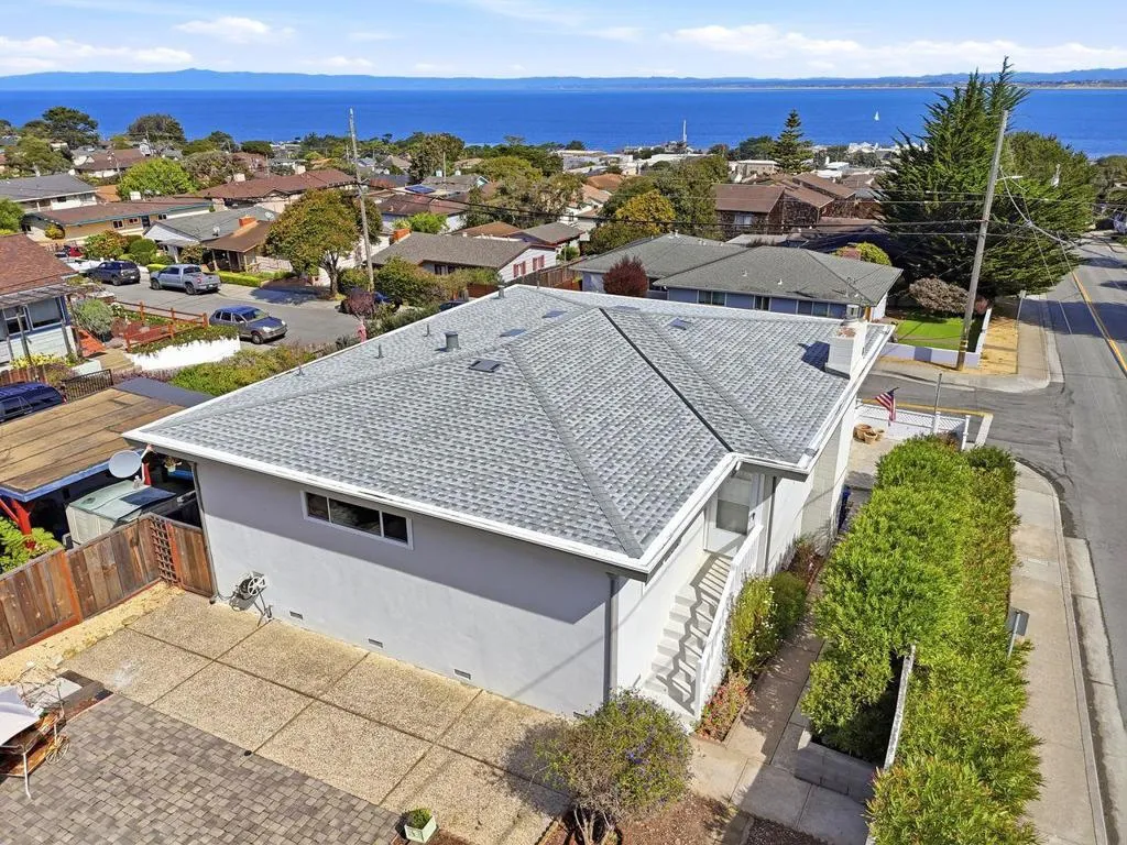 Enjoy coastal living in this Monterey Bay beach house offering sweeping ocean views and a prime location just blocks from the shoreline, coastal dining, boutique shopping, and recreation trails. The home features three bedrooms and three full bathrooms with a functional floor plan designed for comfort and versatility. An oversized garage provides additional storage. Expansive front-facing windows showcase scenic ocean views across the full width of the home. Ocean views can also be enjoyed from select bedrooms, the front patios, and the front deck, creating inviting spaces to relax and take in the coastal setting. The kitchen is equipped with premium appliances and designed for both everyday living and entertaining. The generous backyard provides space for outdoor enjoyment and gardening, featuring mature fruit trees, a bocce ball court, and areas ideal for entertaining. Located minutes from Cannery Row, the Monterey Bay Aquarium, the wharf, and coastal recreation trails, the property offers convenient access to Montereys renowned coastal attractions, historic landmarks, and year-round community events.