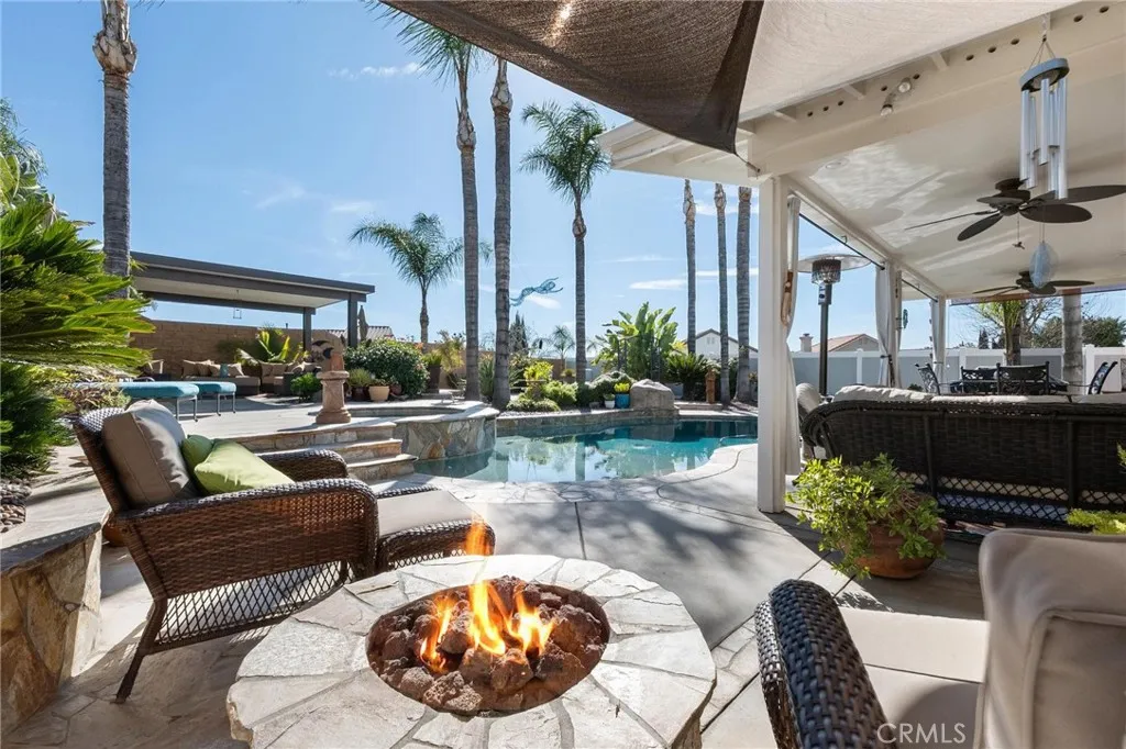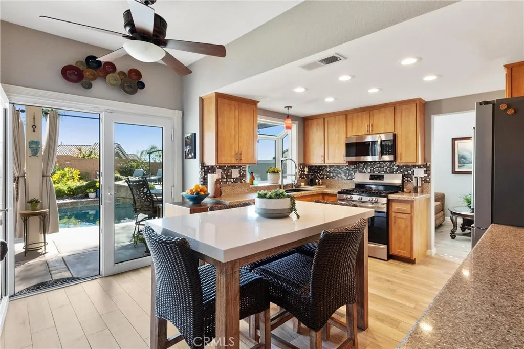 Welcome to 34247 Via Buena Drive in Yucaipa — a beautifully upgraded home offering nearly 1,800 square feet of living space on an expansive 9,000 square foot lot, perfectly designed for comfort, functionality, and entertaining. This spacious four-bedroom, three full-bathroom home features a highly desirable layout with one bedroom and a full bathroom conveniently located on the main level — ideal for guests, multi-generational living, or a home office. All three bathrooms have been tastefully remodeled with high-end finishes and modern design touches. The upgraded kitchen is the heart of the home, showcasing newer cabinetry, updated countertops, stainless steel appliances, composite sink, recessed lighting, pendant lighting, a charming garden window, and a moveable center island with seating. The kitchen opens seamlessly to a generous living room with a cozy fireplace, creating the perfect gathering space. Formal living and dining rooms feature vaulted ceilings that add volume and natural light, enhancing the home's open and airy feel. Step outside to a truly stunning backyard retreat. Enjoy your private in-ground swimming pool and spa with custom stonework, multiple entertaining levels, dual patio areas, built-in fire pit, ambient lighting, and even an in-ground ice chest conveniently located near the spa — perfect for hosting and not haviing to go far for your favorite beverage. Additional upgrades include ceramic wood tile flooring downstairs, upgraded carpeting upstairs, window shutters, updated light fixtures, ceiling fans, upgraded HVAC system, dual-pane windows and sliding glass door, interior and exterior paint, and a spacious three-car garage. The home reflects pride of ownership throughout with a plethora of high-end improvements. Located in a desirable Yucaipa neighborhood with generous lot space and exceptional outdoor amenities, this property offers the perfect blend of style, comfort, and functionality...and no HOA! Be sure to checkout the 3D home tour and video!