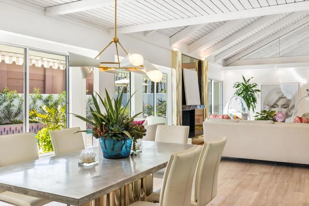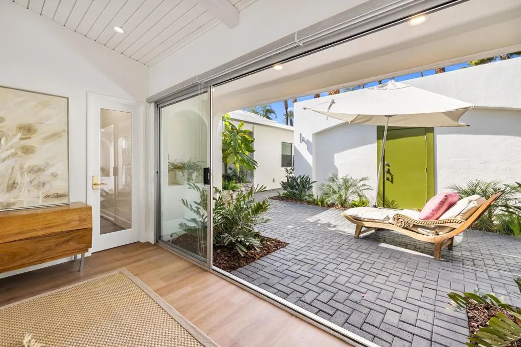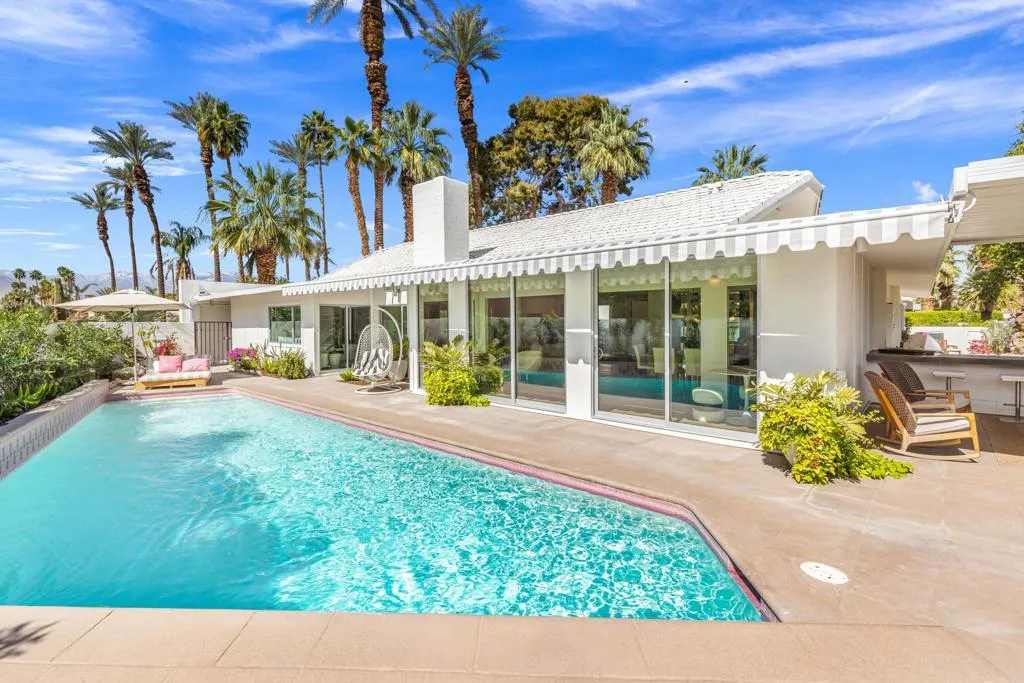 Architectural Steve Chase masterpiece showcasing stunning mountain views in the heart of prestigious Indian Wells. This beautifully reimagined mid-century residence blends timeless design with modern luxury, offering exceptional indoor-outdoor living and breathtaking desert scenery.A private gated courtyard welcomes you into light-filled interiors featuring an open floor plan designed for both comfortable living and elegant entertaining. The chef's kitchen offers quartz countertops, custom cabinetry, premium stainless appliances, and a generous island, seamlessly connecting to the main living areas.The spacious primary suite serves as a tranquil retreat, while a versatile bonus room offers flexibility for a guest suite, office, or studio. Expansive glass doors open to a resort-style backyard featuring a sparkling pool, built-in BBQ, alumawood patio cover, outdoor shower, and multiple lounging areas -- all perfectly positioned to capture spectacular mountain views and desert sunsets.Ideally located just minutes from El Paseo, world-class golf, fine dining, and the Indian Wells Tennis Garden, this exceptional property offers privacy, architectural significance, and the ultimate desert lifestyle.
