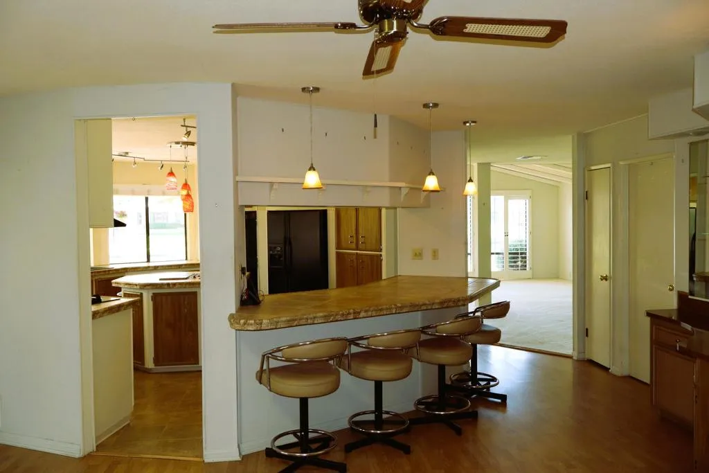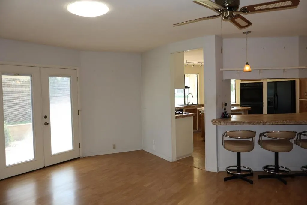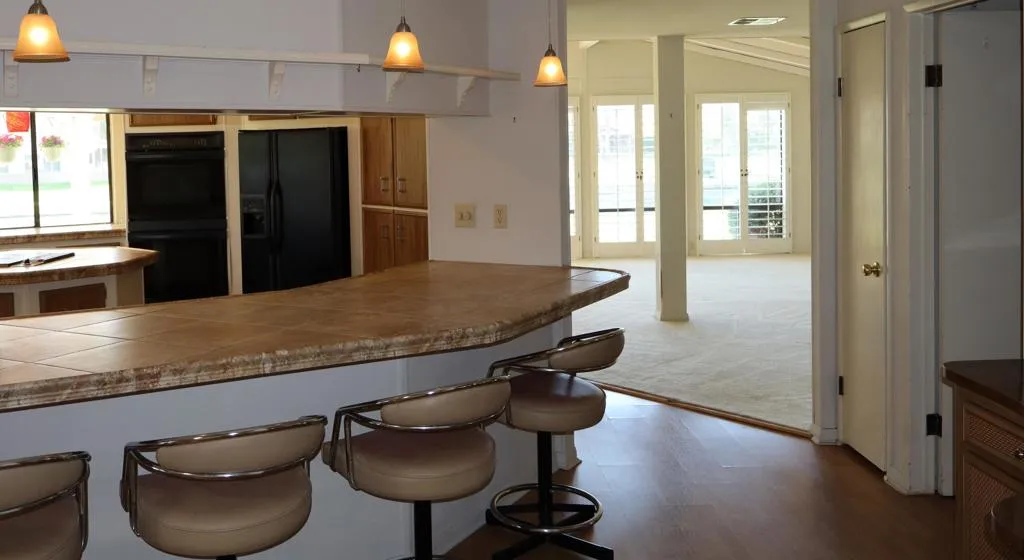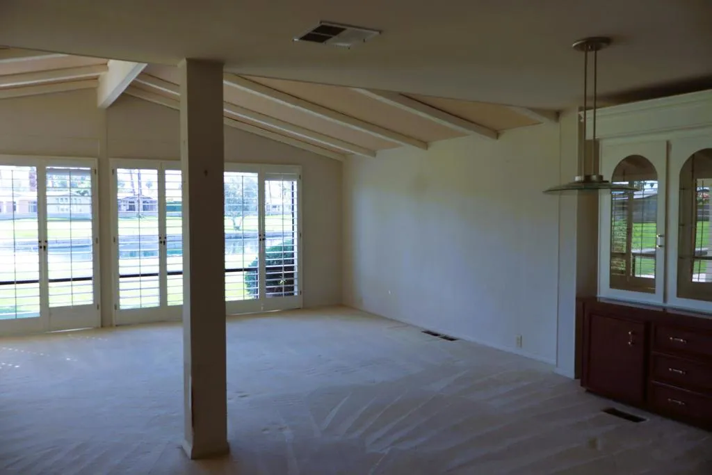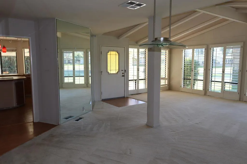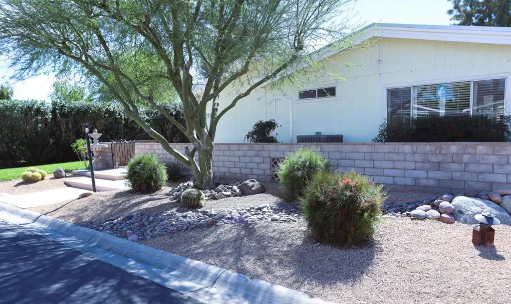Location-Location-Location! This prime lot offers both views & privacy. Over 1800' with a new roof in 2023. Situated overlooking the Golf Course, this home is the last home on the fairway with no home next door from the patio area. Panoramic views of the fountains, lake & mountains from the patio, living room, dining & kitchen areas. The high beamed ceiling & expansive windows in the living room with custom plantation shutters let in abundant light. You will love the kitchen with its bay windows overlooking the private patio and golf course. The center island has a built in grill & lots of storage. The open kitchen has a great tile counter dining & entertaining area extending into the family room. French doors lead out to the patio for easy access for outdoor dining. The separate laundry room has a 2nd refrigerator, lots of storage & a built in desk/computer area. There are 2 bedrooms - the Primary bedroom has an en-suite bath with soaking tub, dual vanity & separate shower. The second bedroom has an adjacent guest bath with pedestal sink & shower. Priced to allow for updates allowing you to make this your perfect Desert Oasis. This home has Solar Energy with a lease that is transferable to the new owner. There is covered parking for two cars & a nice storage shed for all of your toys & gardening supplies. Portola Country Club is the perfect 55+Acive community that you will love for your Desert lifestyle. An accredited 18-hole par 3 golf course with beautiful grounds adorns the community. The remodeled clubhouse with fitness room, billiard room, & fun Portola Pub is the perfect place to enjoy & make new friends. You own your land in Portola which means no land lease. The low HOA fee of $455 includes your golf, 3 pools, Pickleball courts, Bocce Ball, Doggie Park & a full calendar of activities to choose from. We are minutes from El Paseo and all of its stores & restaurants, as well as the beautiful McCallum Theatre & Palm Desert Park wit Aquatic center & lovely walking paths. Premier medical facilities such as Eisenhower Hospital are nearby. Come see why so many are choosing Portola Country Club for their next life's adventure!